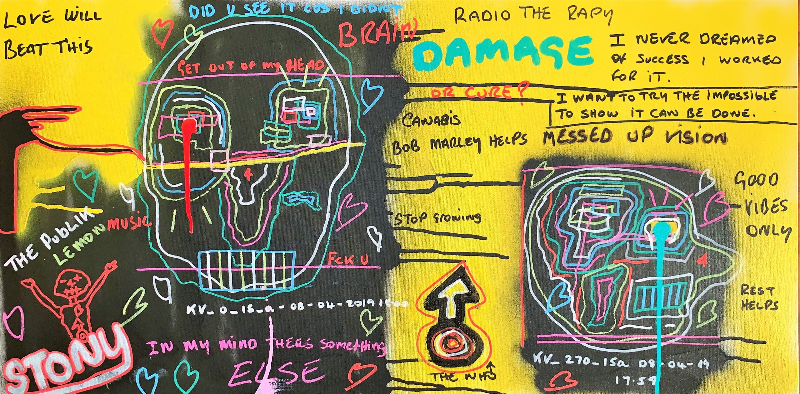 Much of Stony’s work is characterised for its fine written details over an expressionist background