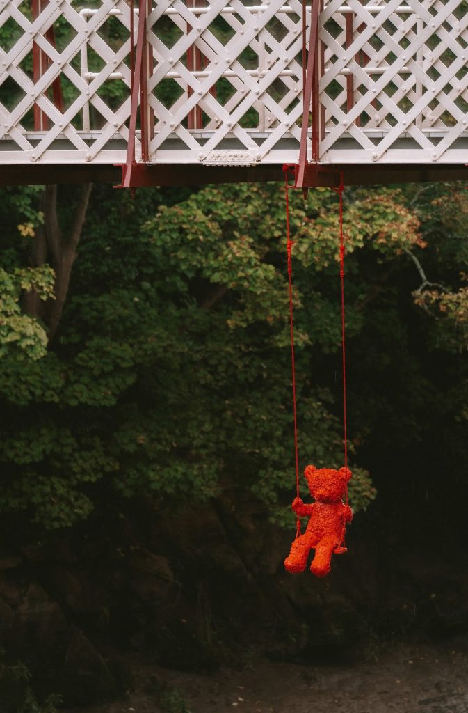 Colomina said that the teddy bear on a swing beneath Gaol Ferry Bridge “evokes childhood and its lightness, reminding us of simple, carefree times” – photo: James Colomina