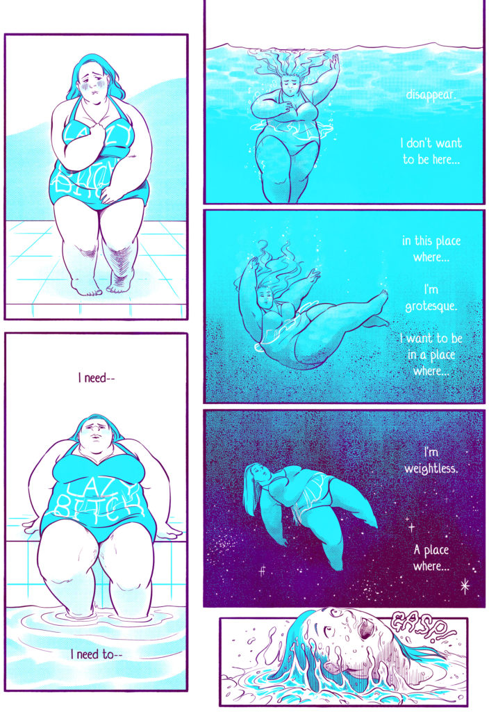 This project has been a labour of love. I had the idea to translate this research into a comic about five years ago after reading Katie Green’s brilliantly observed graphic novel about anorexia Lighter than my Shadow, and seeing parallels with the experiences of people who attended the NHS-subsided weight loss groups I was researching at the time. Though it was only more recently that I was in position to make it happen.