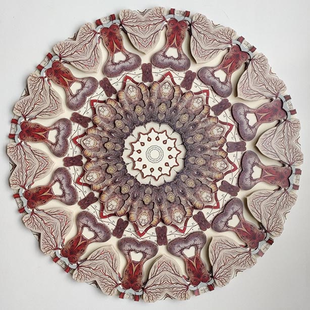 “In my work, I use 18th and 19th century anatomy illustrations to create layered collages. I will be bringing some smaller pieces to the art trail as well as affordable prints and cards.”