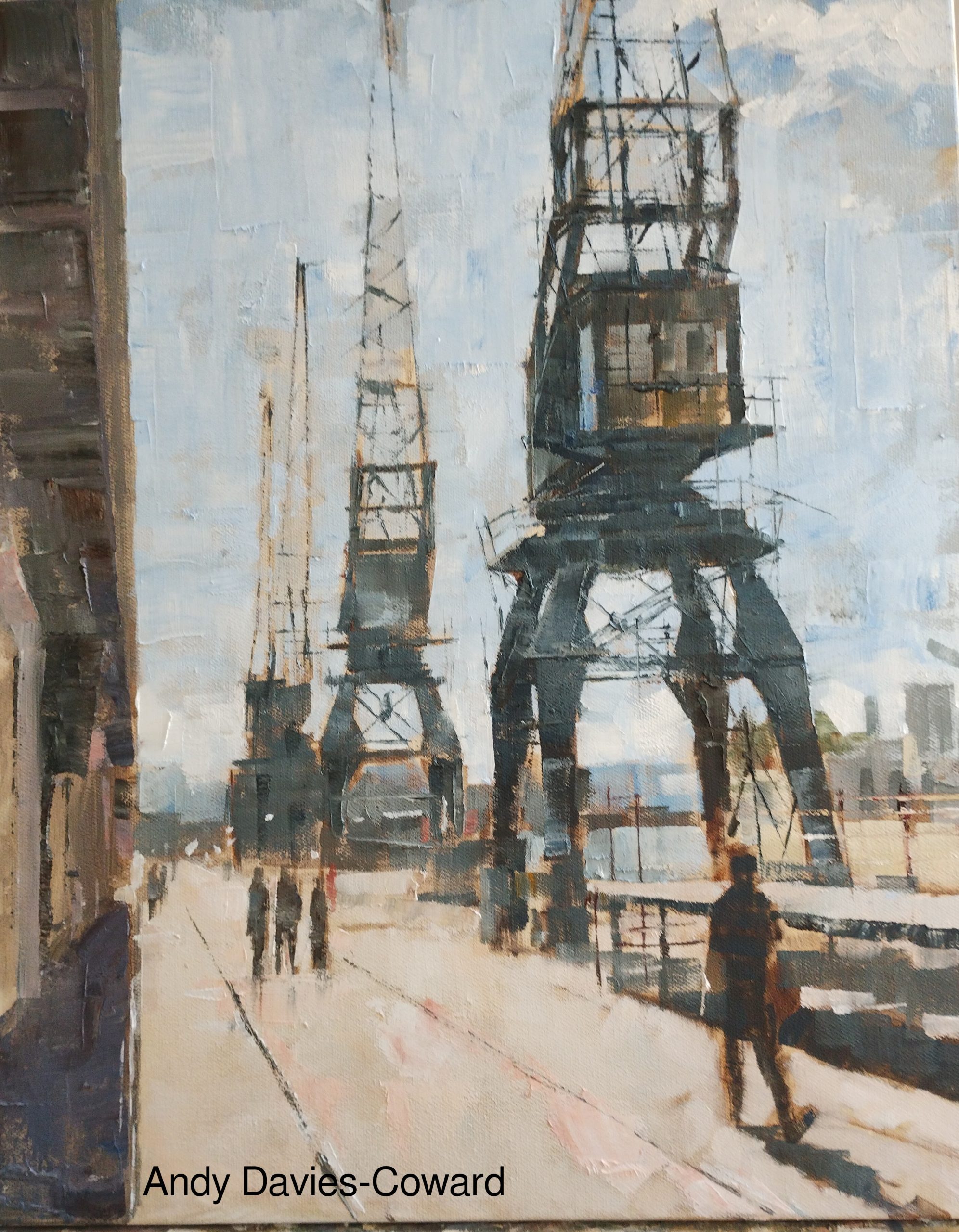 Painting of the historic cranes at Bristol’s dockyard, by Andy Davies-Coward – photo: courtesy of the artist