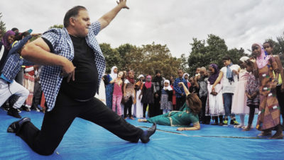 Second place: Demonstrator leading the march in Support of Hamilton House towards Bristol City Council by Giulia Spadafora