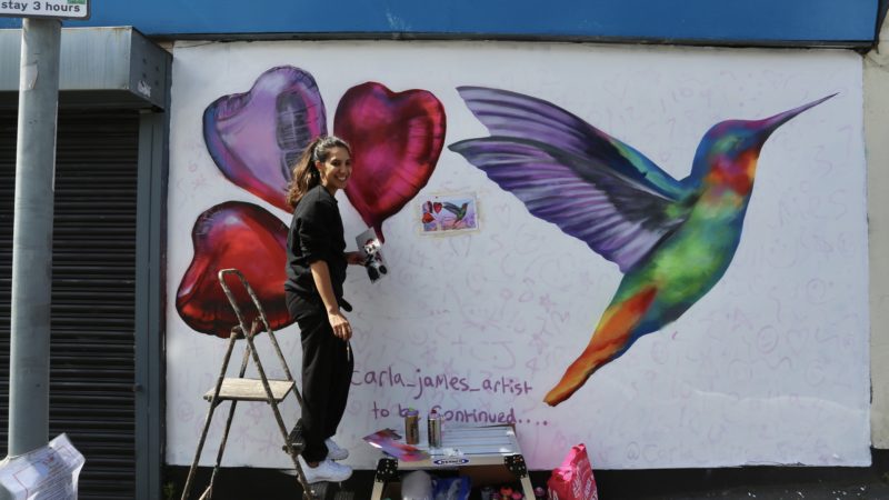 Carla James works on her piece as part of Upfest’s 75 Walls project – photo courtesy of Plaster/Upfest