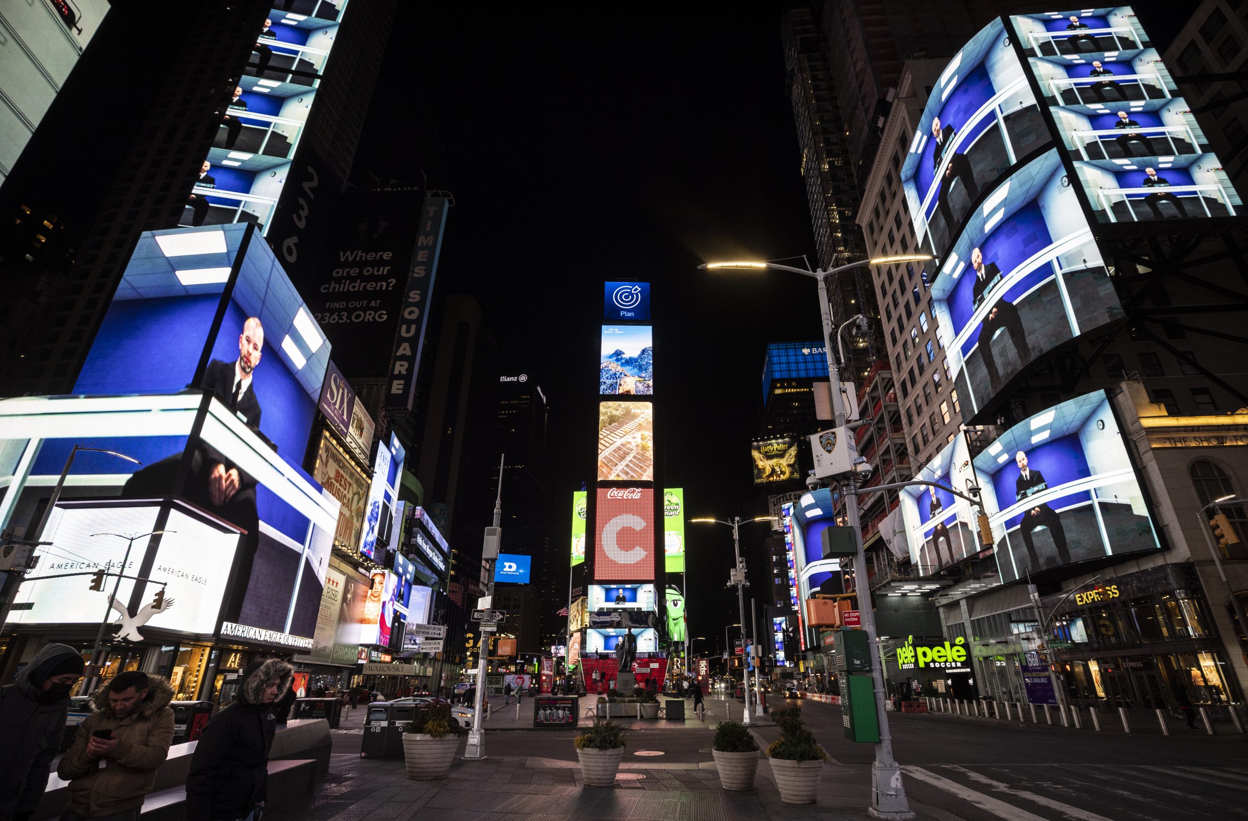Midnight Moment, Wood and Harrison. The work was screened nightly on +80 screens in New York’s Times Square (2022) – photo: Maria Baranova