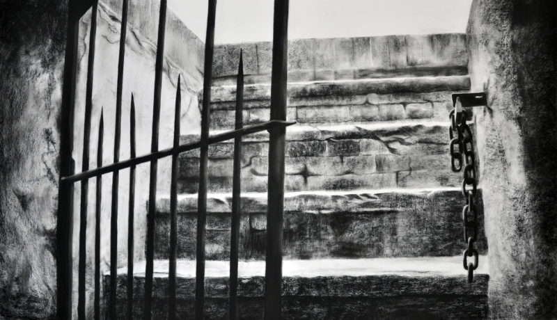 Wallace’s dark and ominous drawings are heavy with the weight of the history that pervades the walls, staircases and hallways she depicts.