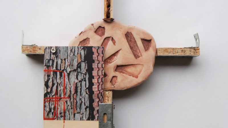 Pamplin was inspired by ‘material dialogues’ and points of tension and craft within a decaying barn structure, to make new work combining wood, metal and clay.
