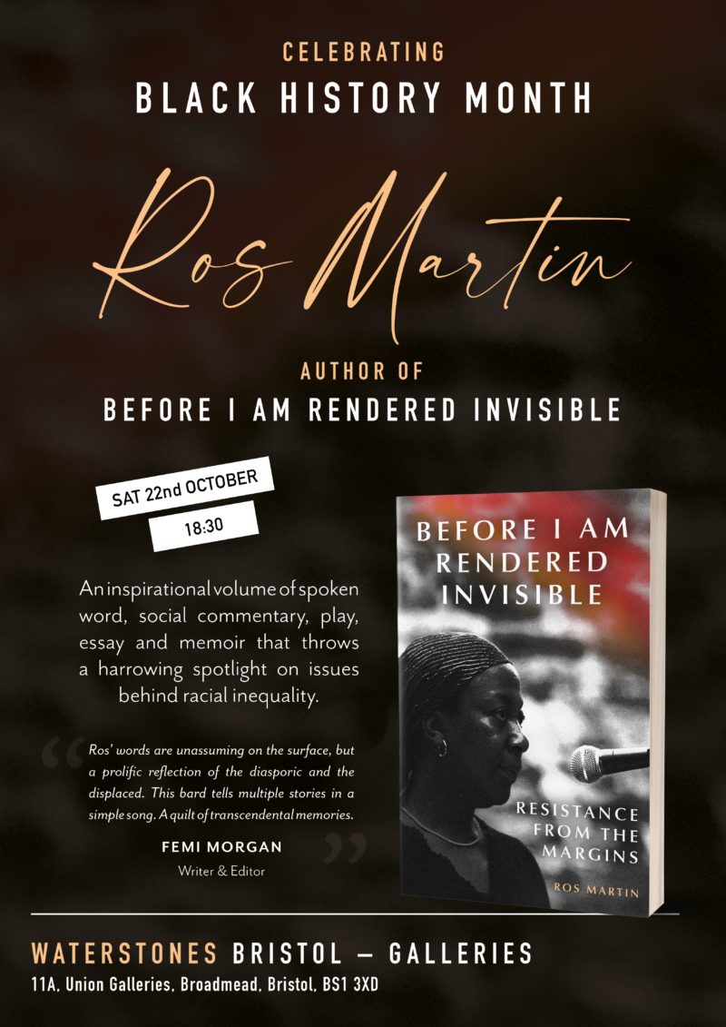 Now, Martin’s DIY activism has been collected into an anthology called BEFORE I AM RENDERED INVISIBLE – a rich mix of social commentary, spoken word play and memoir charting Black struggle with specific reference to her home town of Bristol.