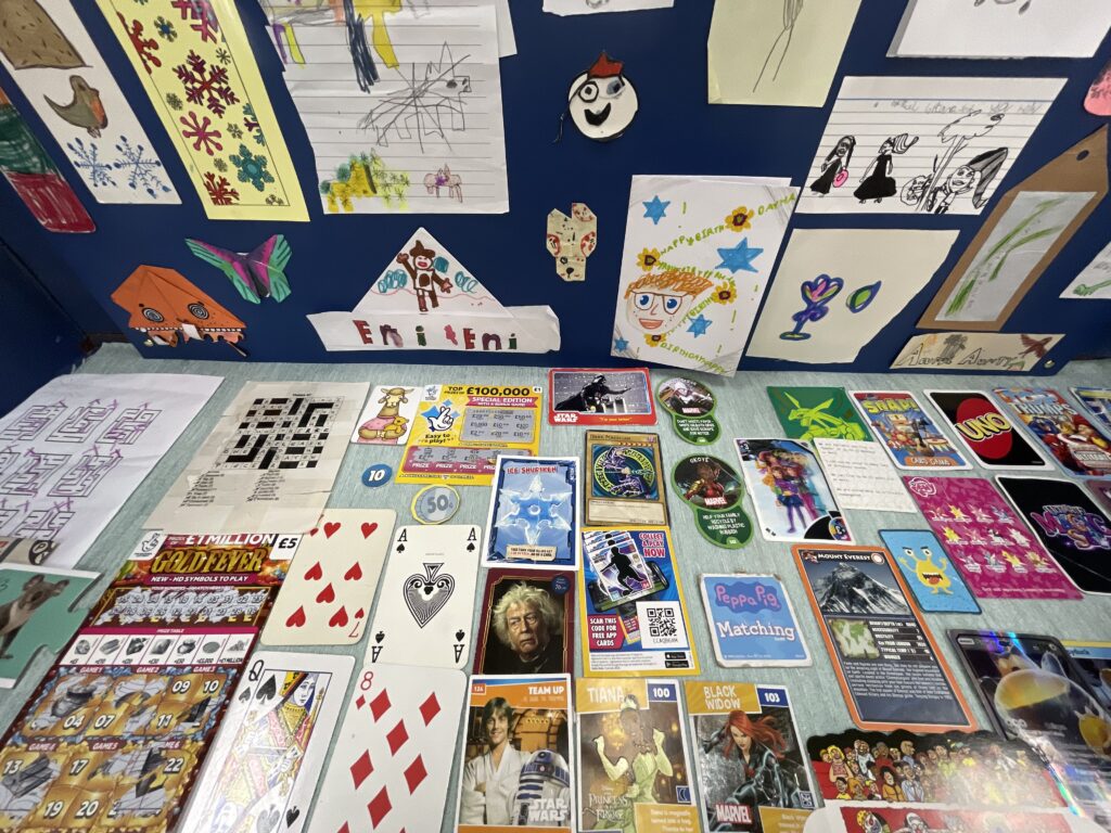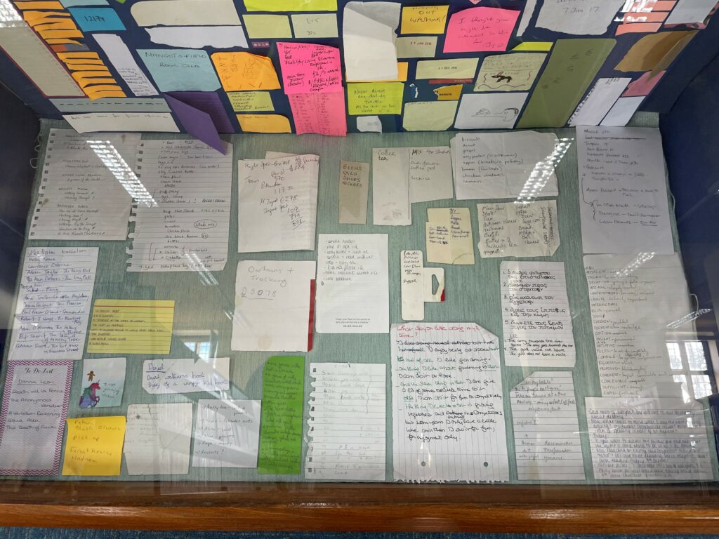 Items in display cases on both the ground floor and first floor include handwritten notes and bank notes, postcards and playing cards, pressed flowers, doodles, and of course bookmarks – lots and lots of bookmarks