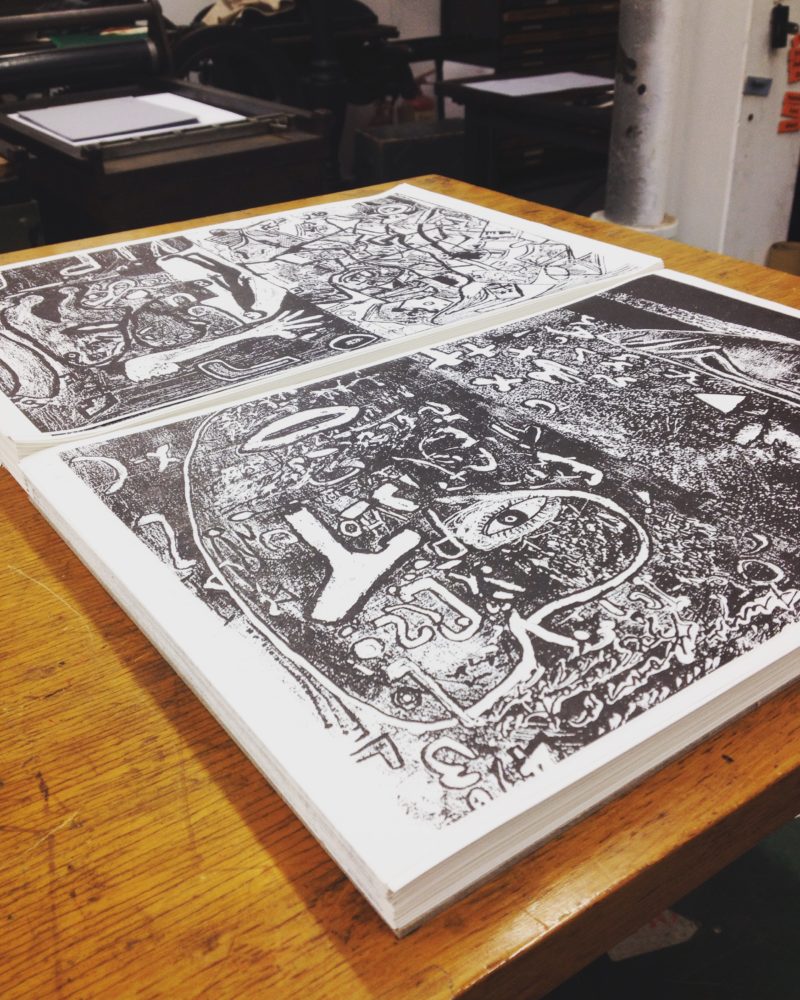 I wanted to produce an object that was a pleasure to hold and handle, as well as to read – hopefully it’ll appeal to print lovers as well as lovers of poetry. We included some of Ray’s unique artworks as endpapers, which are printed beautifully onto delicate bible paper to add a different texture.
