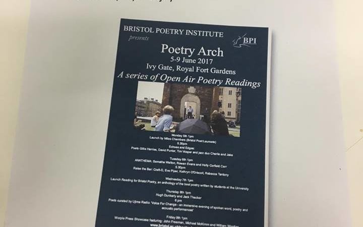 Each year the Bristol Poetry Institute hosts The Poetry Arch – five days of various performances from a diverse range of poets. Despite the miserable weather, the event kicked off as planned, albeit under cover into the library café across the street, rather than at the Ivy Gate in the Royal Fort Gardens.