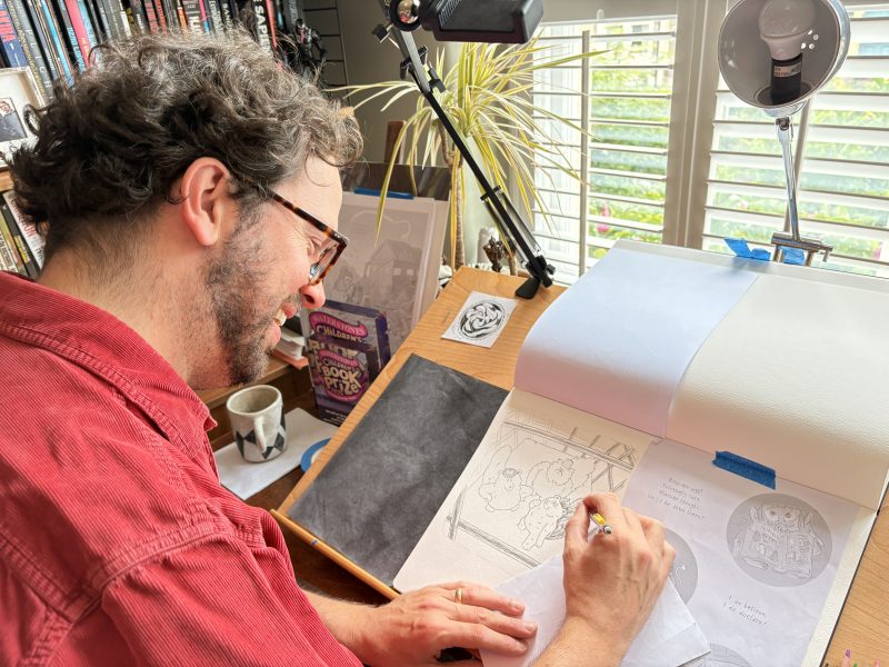 Mikey, who has also written an adult fiction novel with hundreds of illustrations tucked within its word-filled pages, finds a stark difference between drawing for kids and adults.