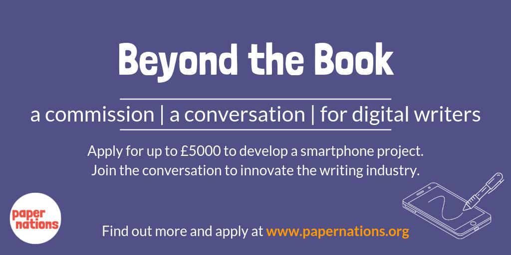 To find out more about Paper Nations’ Beyond the Book project, including how to apply for one of the three £5,000 digital writing commissions, visit http://papernations.org/writing-for-all/call-for-action/beyond-the-book/