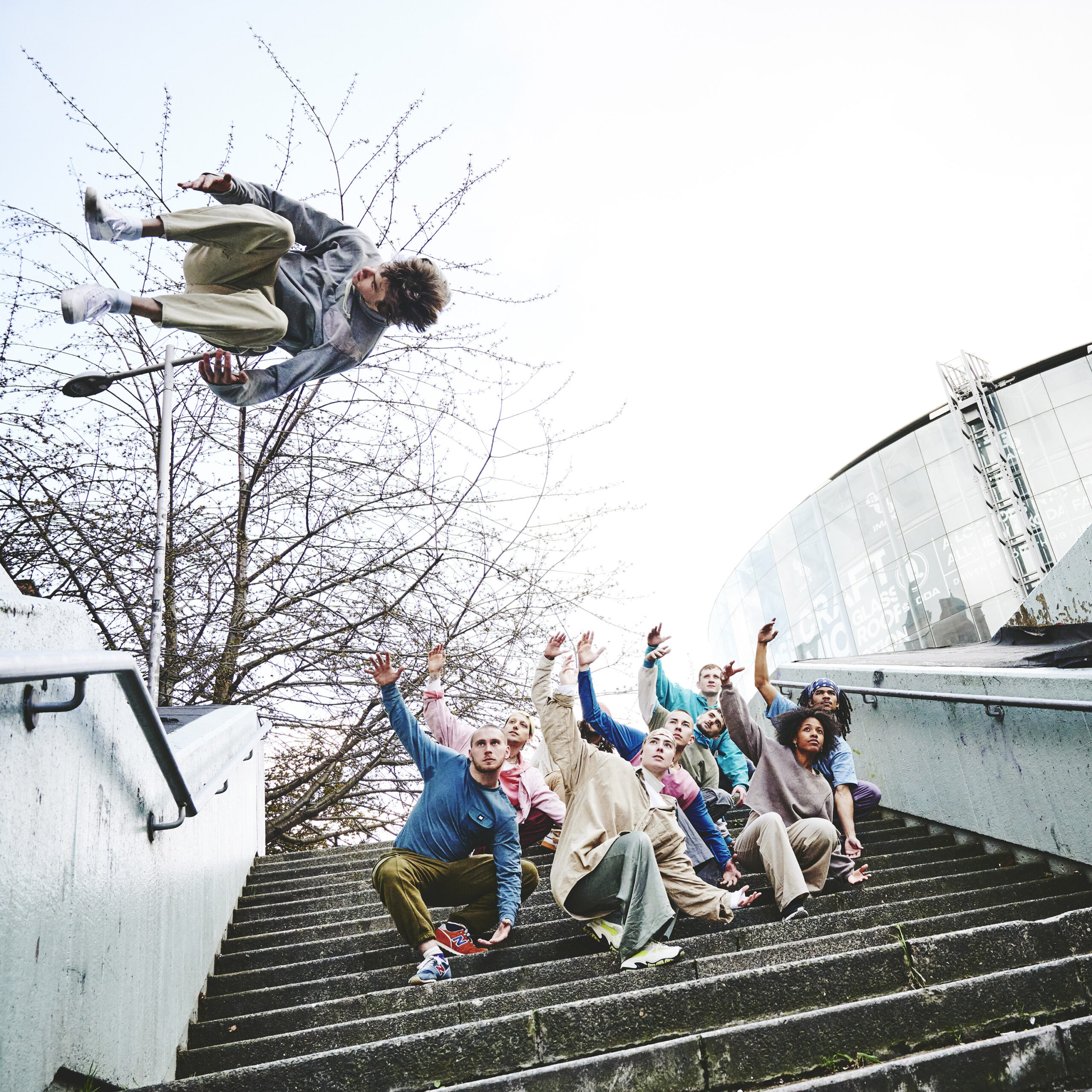 The site-responsive show will feature a graduate compay of 10 young acrobats, dancers, climbers and parkour artists, and will conclude with an invitation to a flashmob, to reflect one of its overarching themes: ‘reclaiming public space’.