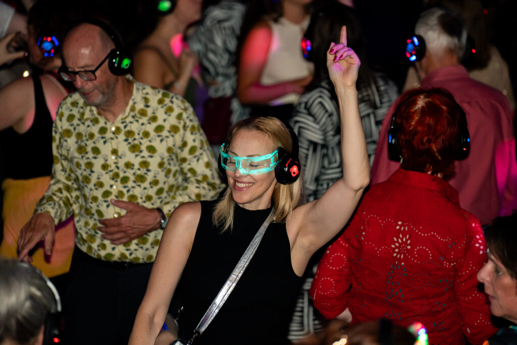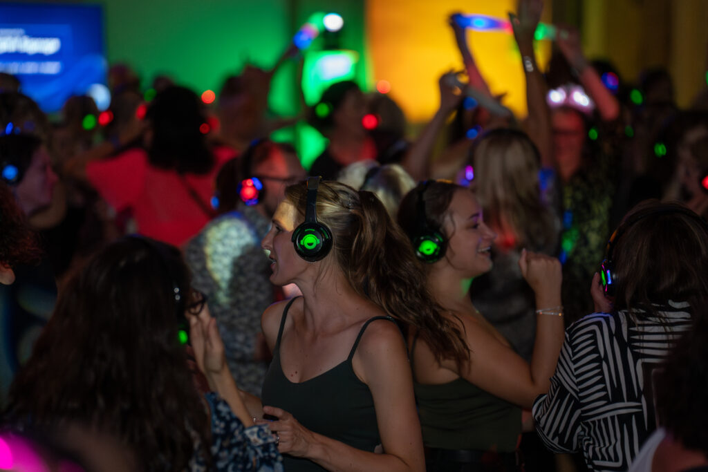 The party continued into the early hours of the morning with revellers bopping to everything from old-school bangers to pop and punk through their wireless headphones fitted with multiple channels.