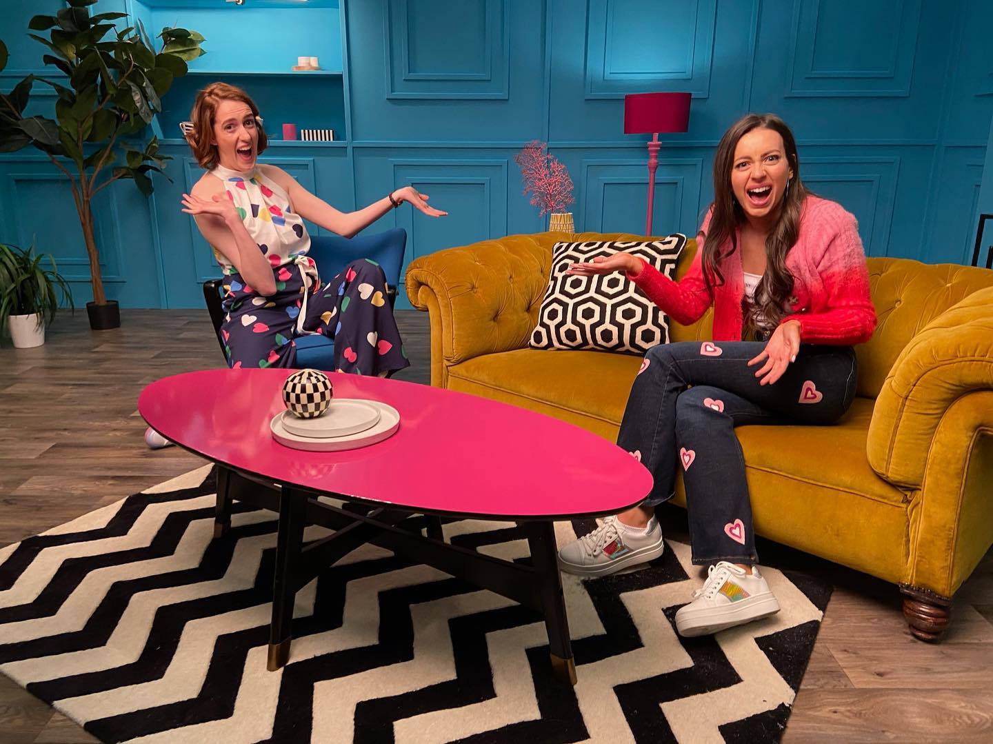 Maddy Lucy Dann (left) and Abi Clarke (right) on the set of Dating no Filter – photo: Sky One / Monkey