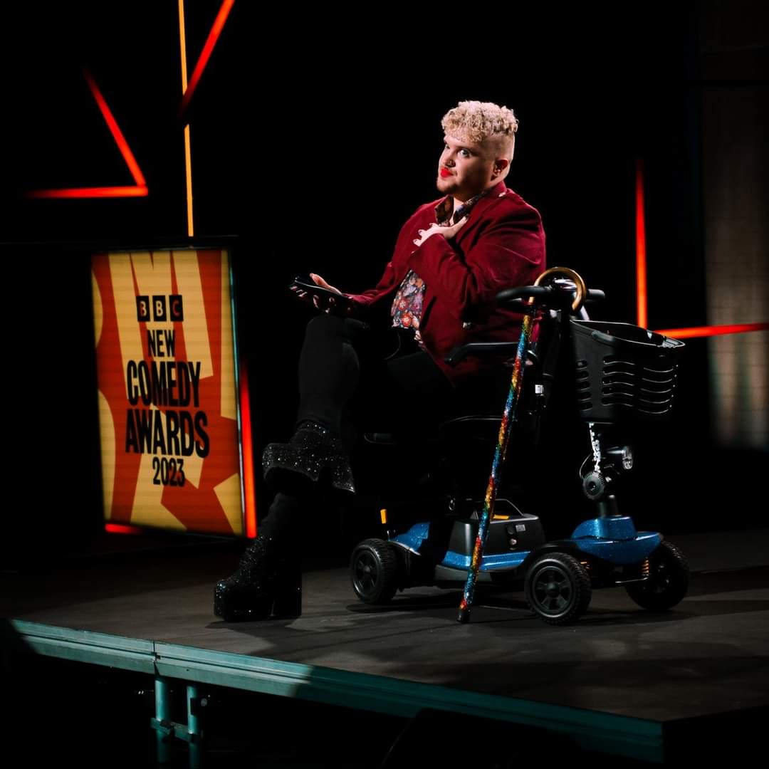Taking to the stage on a mobility scooter dubbed ‘Miss Carriage’, Gibbon’s comedy sits at the intersection between disability and queer culture.