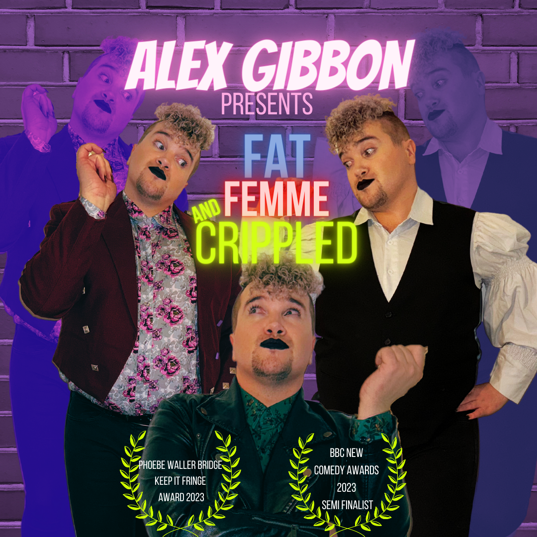 Their solo standup hour Alex Gibbon is: Fat, Femme & Crippled won the Phoebe Waller-Bridge ‘Keep it Fringe’ award in 2023, which enabled Gibbon to take the show up to Edinburgh that summer.