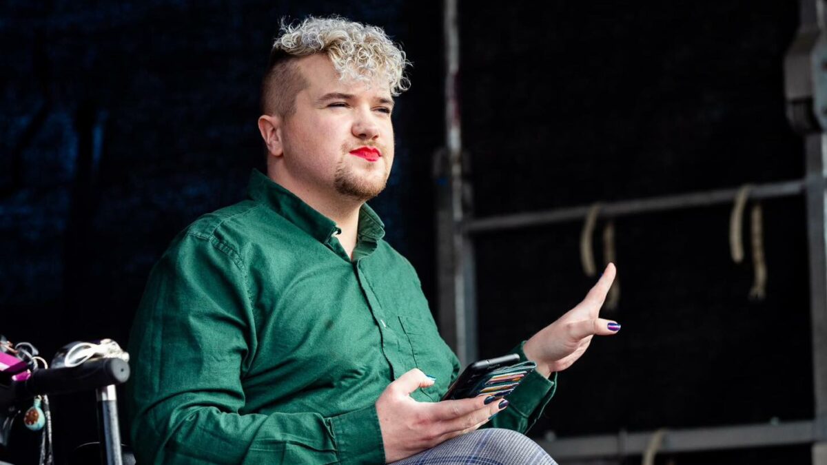 Taking to the stage on a mobility scooter dubbed ‘Miss Carriage’, Gibbon’s comedy sits at the intersection between disability and queer culture.