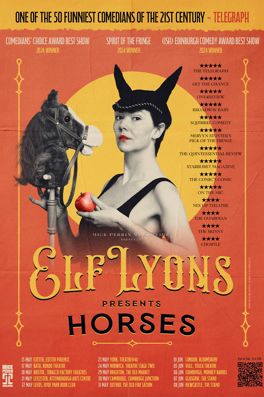 Elf Lyons: Horses is at The Rondo Theatre, Bath on May 17 at 8pm and Tobacco Factory Theatres on May 18 at 7.30pm. Tickets are available at www.ticketsource.co.uk and www.tobaccofactorytheatres.com respectively.