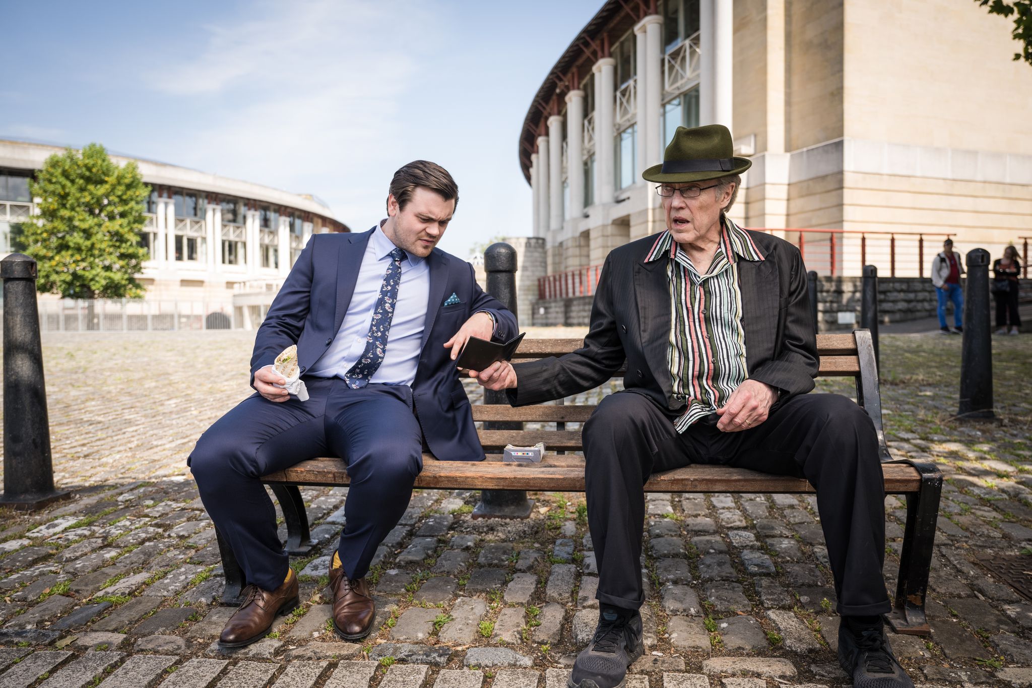 Christopher Walken plays Frank Sheldon , with this scene filmed next to the Lloyds Amphitheatre – photo: BBC/Amazon Studios