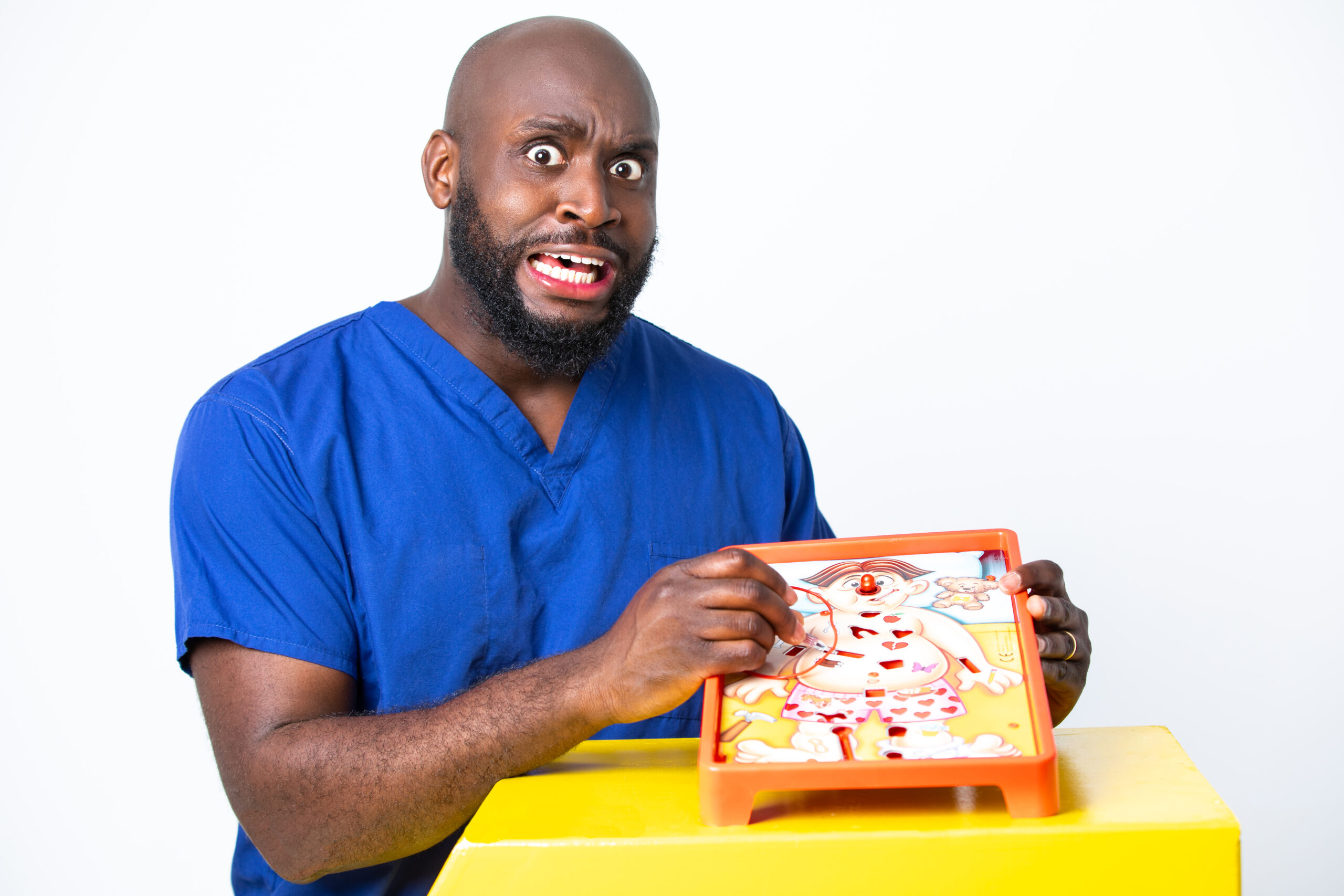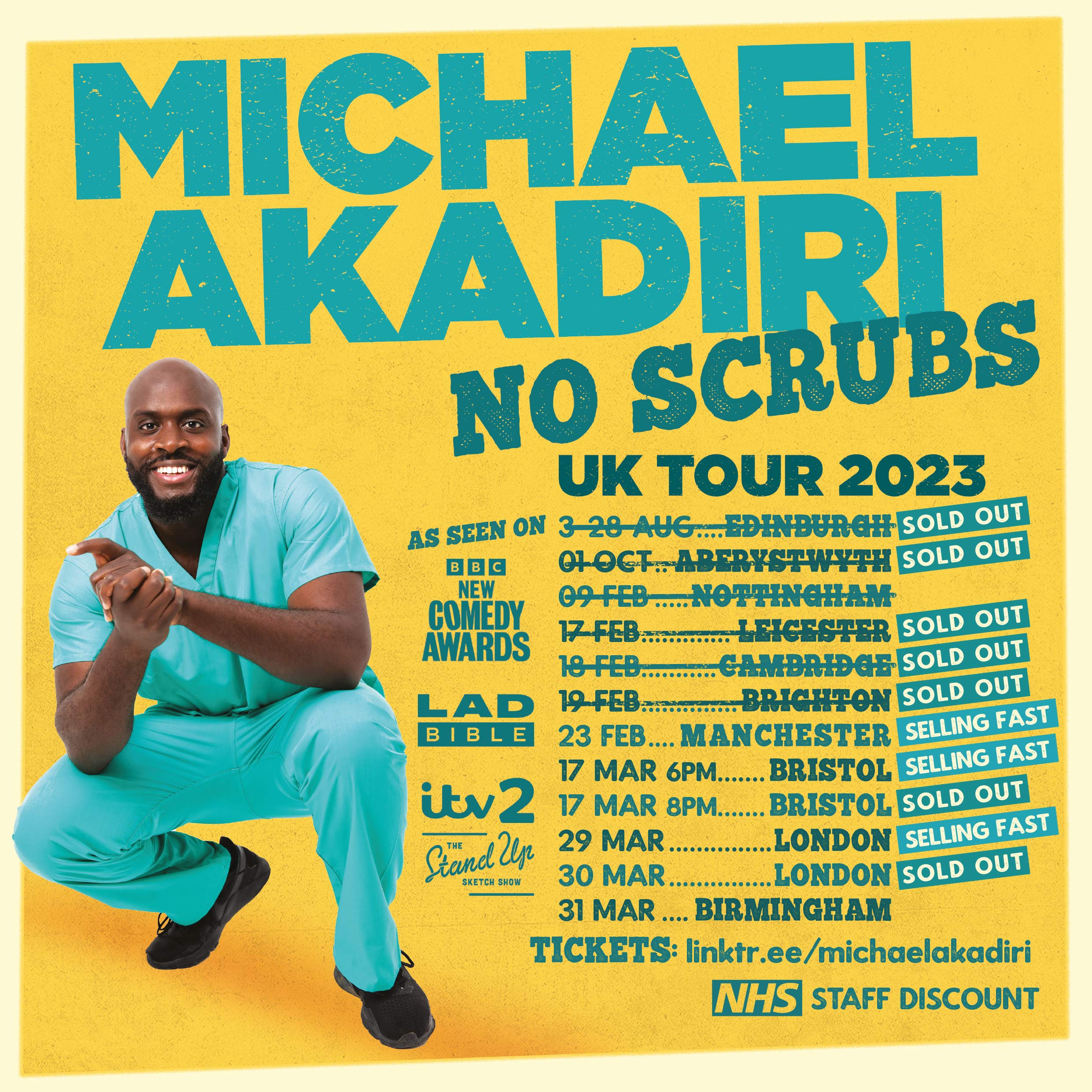 Joining a number of medics turned comedians (Adam Kay, Mike Wozniak, Ed Patrick and Stefania Licari amongst them), junior doctor Michael Akadiri has left the hospital corridors behind for a while, switching NHS night shifts for comedy clubs, podcast recordings and parenting.