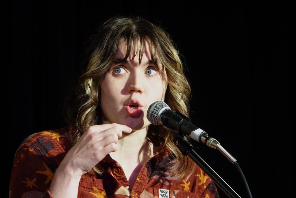 A sense of ease pervades as the ‘aha’ moment makes its way through the room; the 120-strong audience kicking their feet along and bobbing their heads as the tempo picks up. She ends prematurely but most of the assembled throng seem already enraptured by the whimsy of the first five minutes.