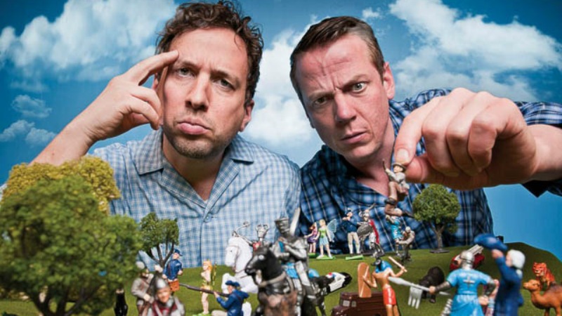 American sketch duo The Pajama Men (pictured above) take a loose, semi-improvised approach today, and it’s a joy to see two men so in tune with one another that their occasional smiles and half-giggles add to, rather than diminish, their performance. The most illustrative set-piece comes when the two men become a “two-headed monster” and take random audience questions, then slowly improvise one single answer while their voices remain in perfect unison. Other skits are more scripted, such as the framing device of two news readers reading out daft story summaries – “Dolphins don’t exist! … They’re just sharks on ecstasy”.