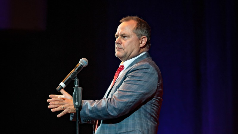 “I challenge you to think of a more deserving cause to raise money for,” says our host Jack Dee, tongue planted firmly in cheek. Tonight, Colston Hall is packed for a fundraiser for Bristol Slapstick Festival 2017. They have indeed spoilt us with a stellar line up of comics and Dee is the perfect compere. So embedded is his grumpy persona that all he has to say to raise the first laugh of the evening is “I’m delighted to be here”.