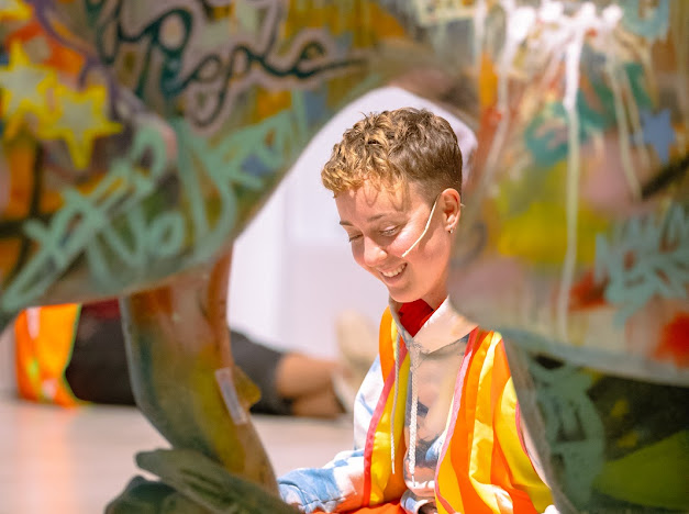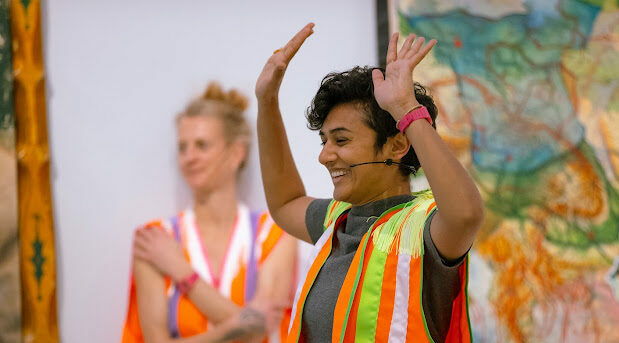 An intergenerational group of co-working artists have been performing the experimental, interactive dance show Satelliser: a dance for the gallery in gallery spaces around the UK since 2021.