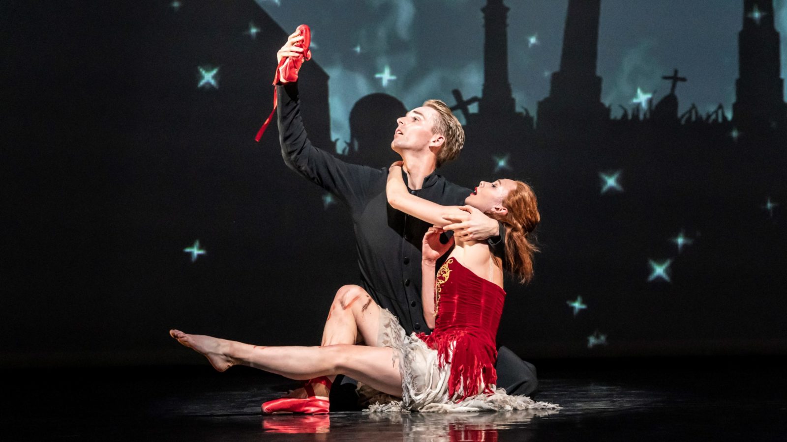 Set to the romantic music of golden-age Hollywood composer Bernard Herrmann, Bourne’s The Red Shoes is orchestrated by Terry Davies, with cinematic designs by Lez Brotherston, lighting by Paule Constable and sound by Paul Groothuis.