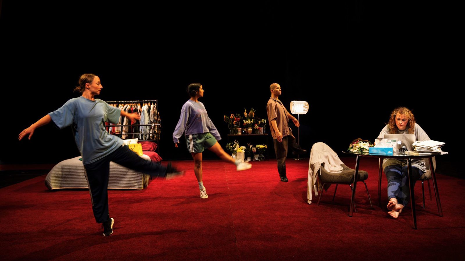 Whether frying eggs, using the hairdryer or phoning HMRC, it is a series of commonplace activities that lend the piece its structure, beautifully interwoven with movement and dance from a trio who perform unbeknownst to Moroney’s protagonist.