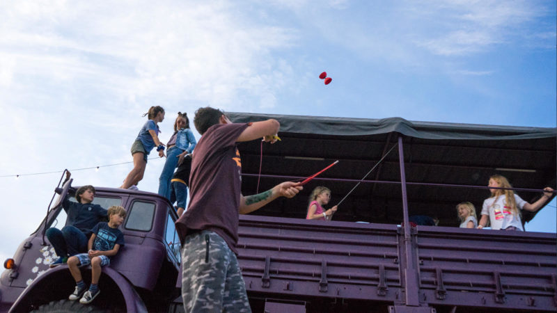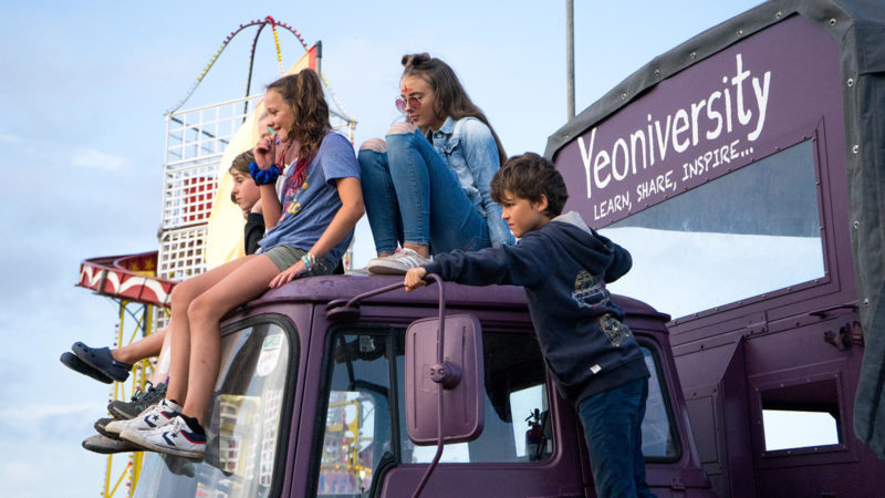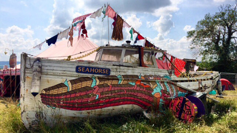 The site took up a field and a half of Chew’s vast green expanse, the Lake Stage standing a radiant purple spire in the centre. The second stage swallowed up its audience, a low-slung tent with a comfy ambience which led most punters to sprawl out on the floor while enjoying the daytime performances. Surrounding the music stages was the Vegan Pyramid, the Gathering Place fit with a bejangled boat and secret yoga tents, Yeo Valley vans serving ice cold milk and slap up breakfasts and traders a-plenty selling sustainable lifestyles. It was immediately obvious this festival was less about pleasing audiophiles and more about accommodating families. There was an atmosphere not unlike a comfortable campsite in the countryside; a base for young kids and parents who want a little escape from the nine to five.