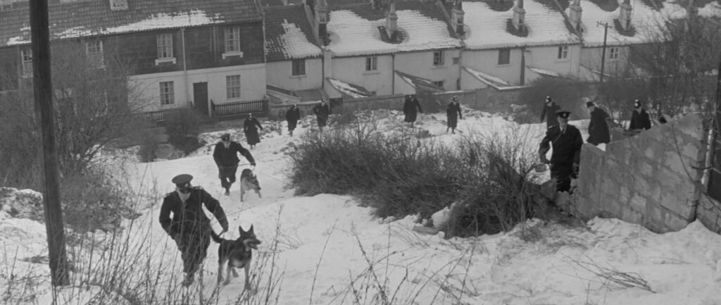 The film actually makes great use of the Georgian city and is beautifully photographed in monochrome Cinemascope by Arthur Grant, who went on to becomes Hammer’s most prolific cinematographer. The opening shot comprises a pan from the Abbey to the Pump Rooms, where lots of posh medical folk are grooving at a New Year’s Eve Party. One tipsy character then makes her way to the ‘Great Roman Bath’ (before it underwent a makeover) and dives in fully clothed. The Theatre Royal is the scene of one of the earliest outbreaks and the Assembly Rooms are converted into an emergency clinic. Other locations include the Bath Chronicle offices and, inevitably, the Royal Crescent. This being Bath, virtually none of the architecture has changed over the last half century or so, although it’s now somewhat cleaner. The fashions, cars and social mores depicted also underline L.P. Hartley’s ‘foreign country’ quote. Yep, those doctors really are chain-smoking on the wards. And, of course, there’s much fun to be had in comparing and contrasting with responses to the Covid pandemic. Interestingly, Guest arrived with mountains of fake snow but didn’t have to use any of it since he was filming over the winter of 1962/63 – one of the coldest of the 20th century.
