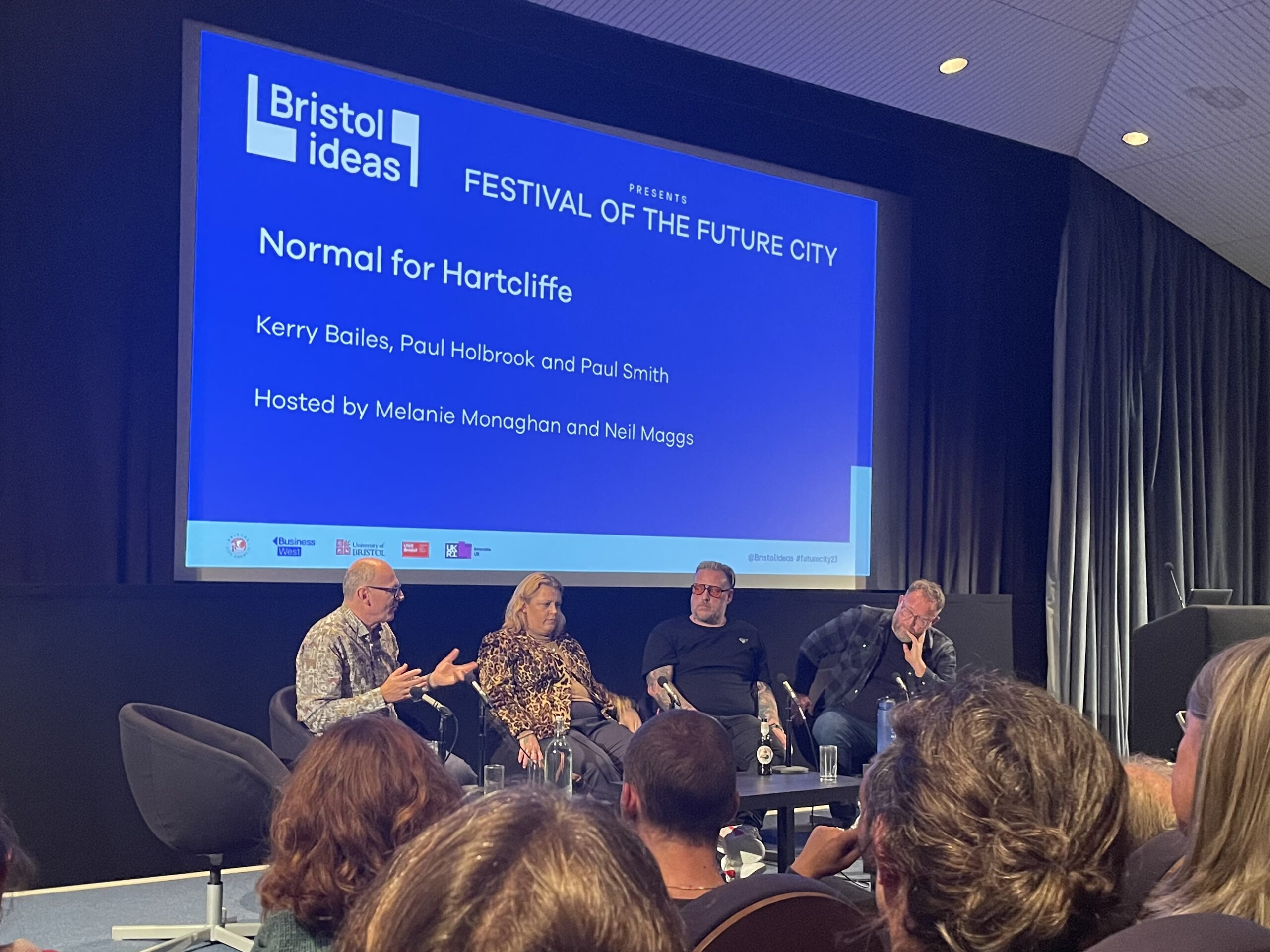 Bristol Ideas’ screening of ‘Normal for Hartcliffe’ included a panel discussion hosted by Maggs about the issues it raises – photo: Betty Woolerton