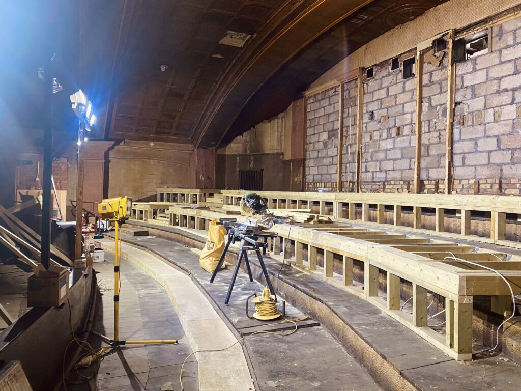 But the slump in cinemagoing combined with the three day week of the early 1970s led to the decision to close the beautiful curved balcony in 1972. Since 1996, the cinema has been run as a charity – the Curzon Community Cinema. Much renovation has taken place since then, notably the restoration of the leaky roof in 2020. There had always been a plan to reopen the balcony, which was accessible to the public only on guided tours during the cinema’s open days.