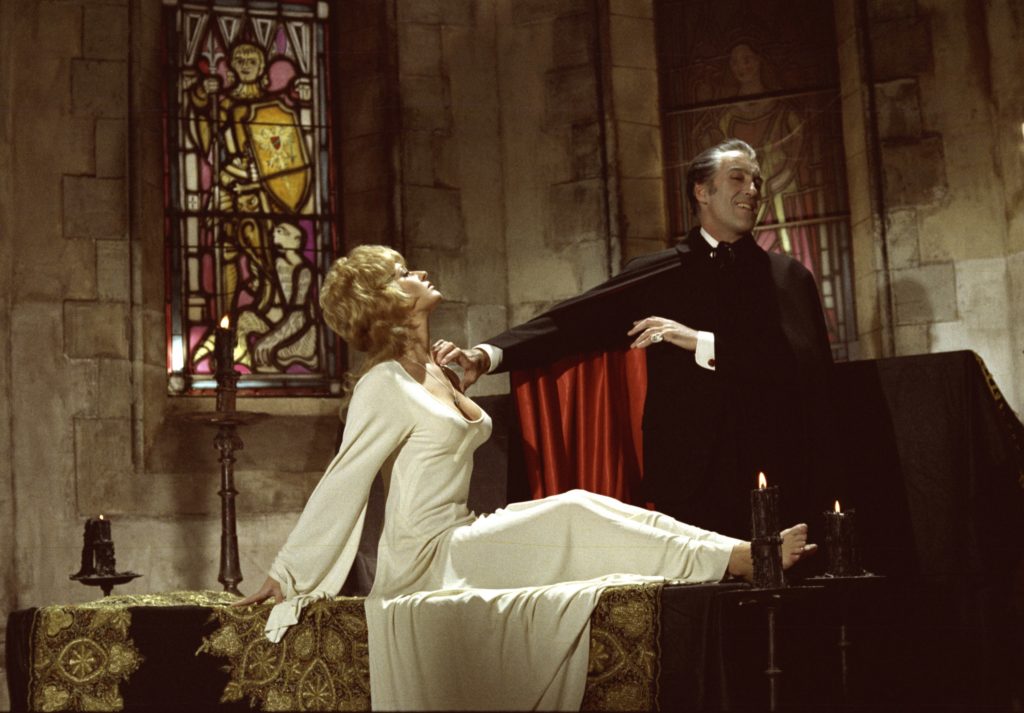 Christopher Lee averts his eyes from an unwanted distraction in ‘Dracula AD1972’
