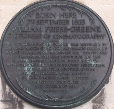Commemorative plaque for William Friese-Greene, an inventor and travelling showman, who was born in Bristol