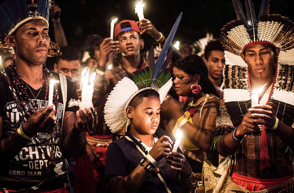 The Flame of Struggle: Xakriabá people of Brazil protest against the government. Photograph: Edgar Kanaykõ
