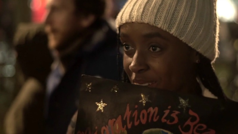 Three student filmmakers from DbS Music’s Screenology Production School headed to the anti-Trump rally at College Green to see what they could create from the atmosphere at the protest. Despite grim weather conditions and levels of mud and rain rarely seen outside Glastonbury Festival, they managed to capture the warmth of community spirit that was felt at the protest, which had a diverse turnout.