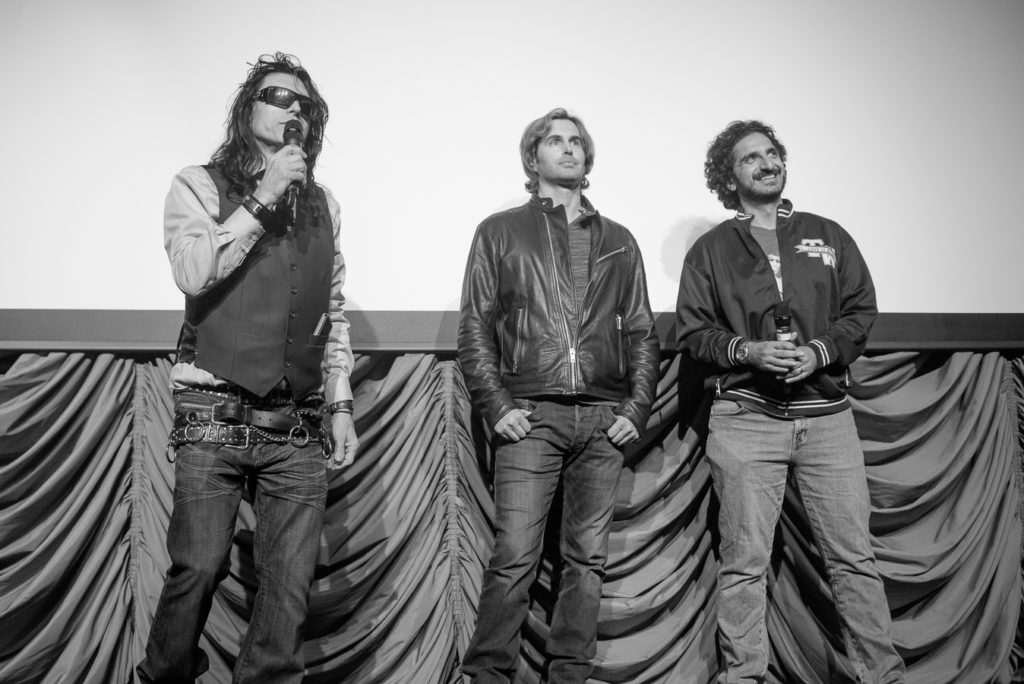 Tommy Wiseau, Greg Sestero and Ti Singh on stage at the Redgrave Theatre, Clifton, September 2017