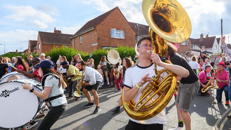 Smoosh! from Paraorchestra was a musical promenade through the streets of Knowle West featuring dozens of musicians and a troop of dancers.