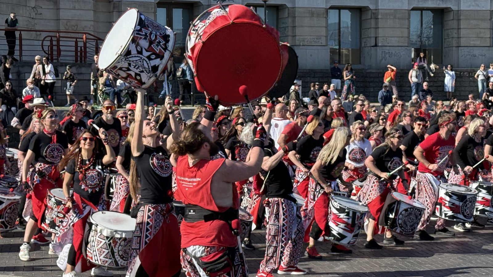 The sound of drums echoed across the harbour as the combined sound of nine bands entertained crowds on the Lloyds Amphitheatre as part of Anglophones, the annual meeting of batala bands based in the UK.