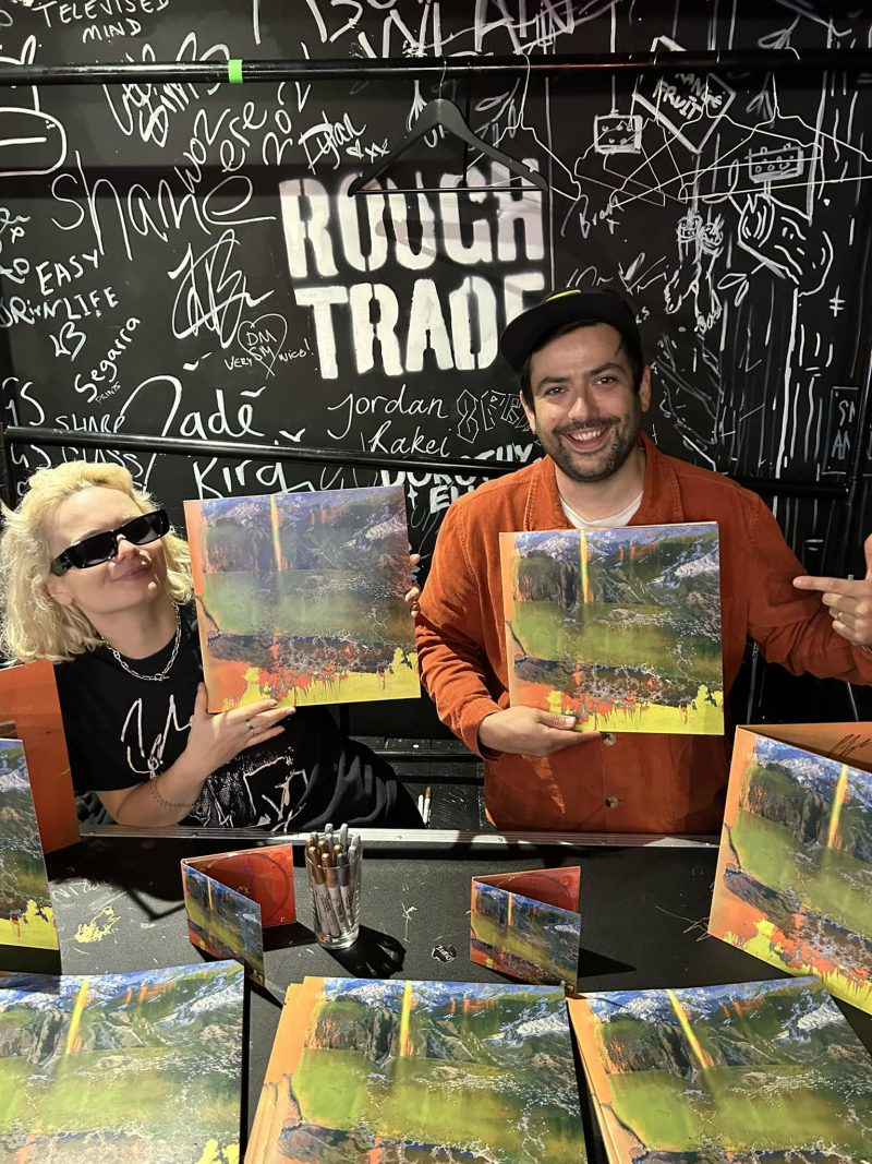 Holly Wellington, Ishmael’s vocalist, and Pete Cunningham sign copies of their latest album, Rituals, in Rough Trade – photo: Pete Cunningham