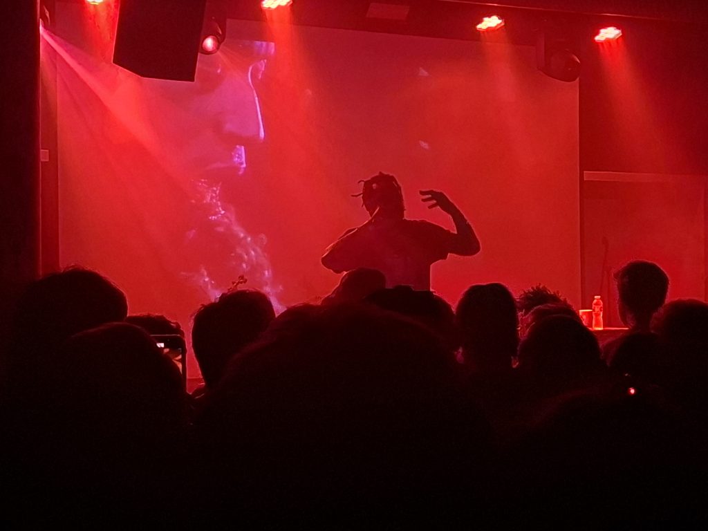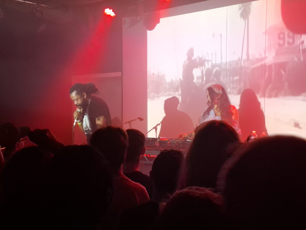 It was a hell of a performance, as a near constant stream of syllables poured from the rapper’s mouth as – on the oustanding BLK ZOMBY – “staggering post-colonial African zombie states chase the people into the waves” while “Moet Chandon bottles bust against the bows of boats”.