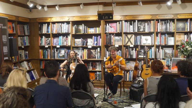 Literary folk: they love to perform surrounded by books, like here at Hatchards in Portsmouth – photo: The Bookshop Band