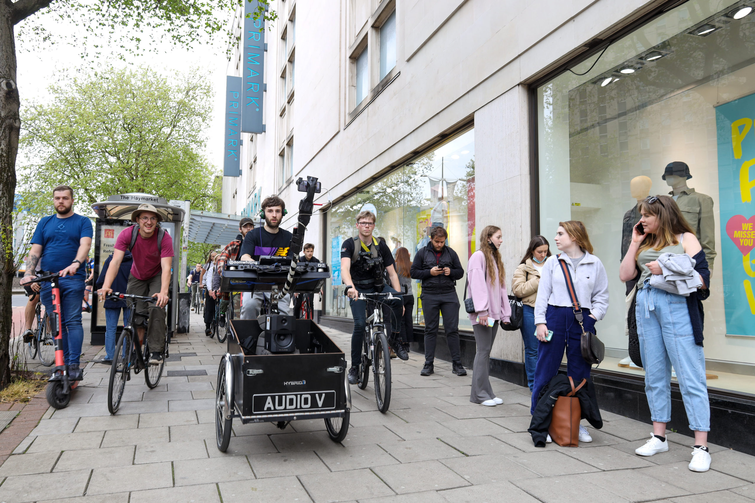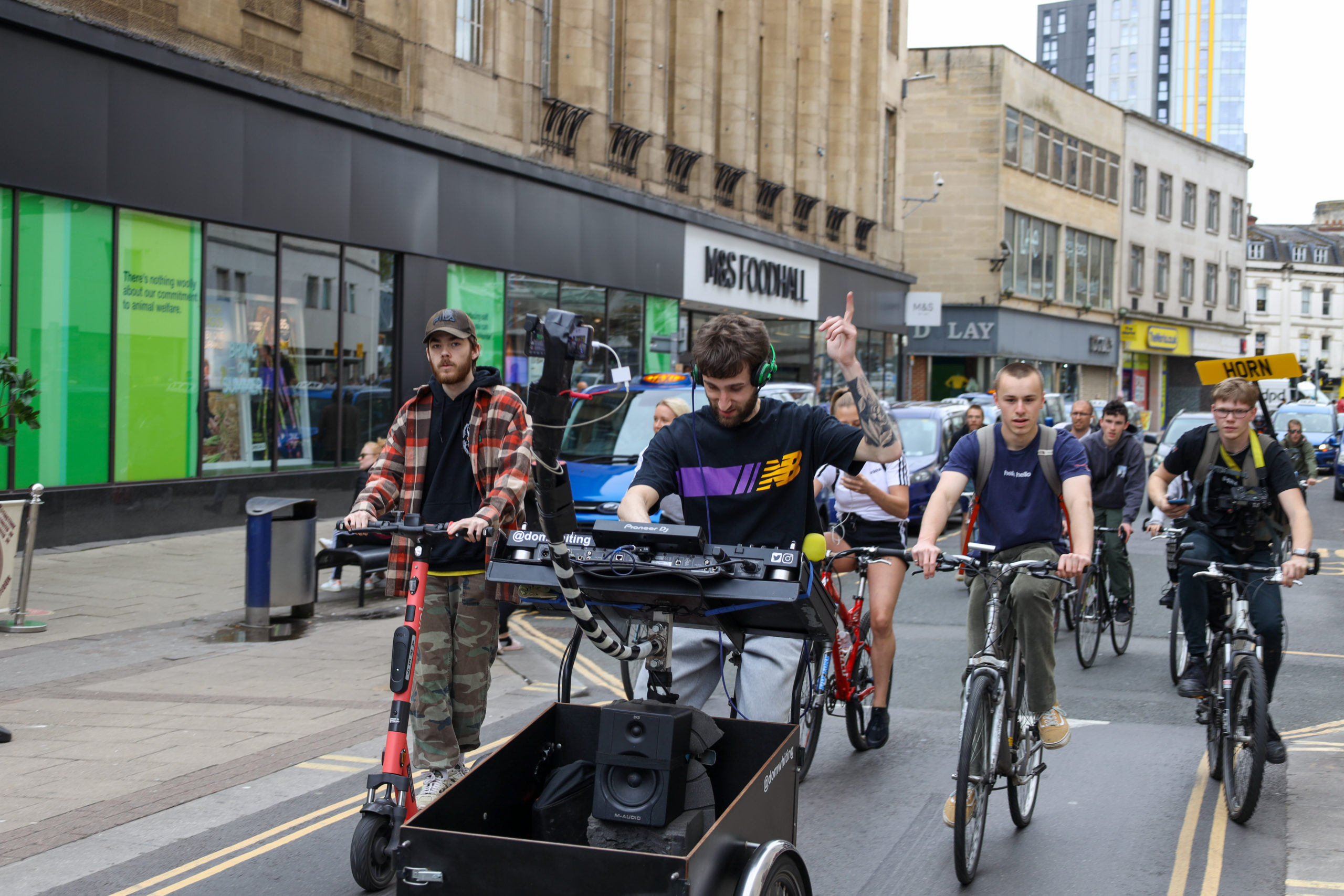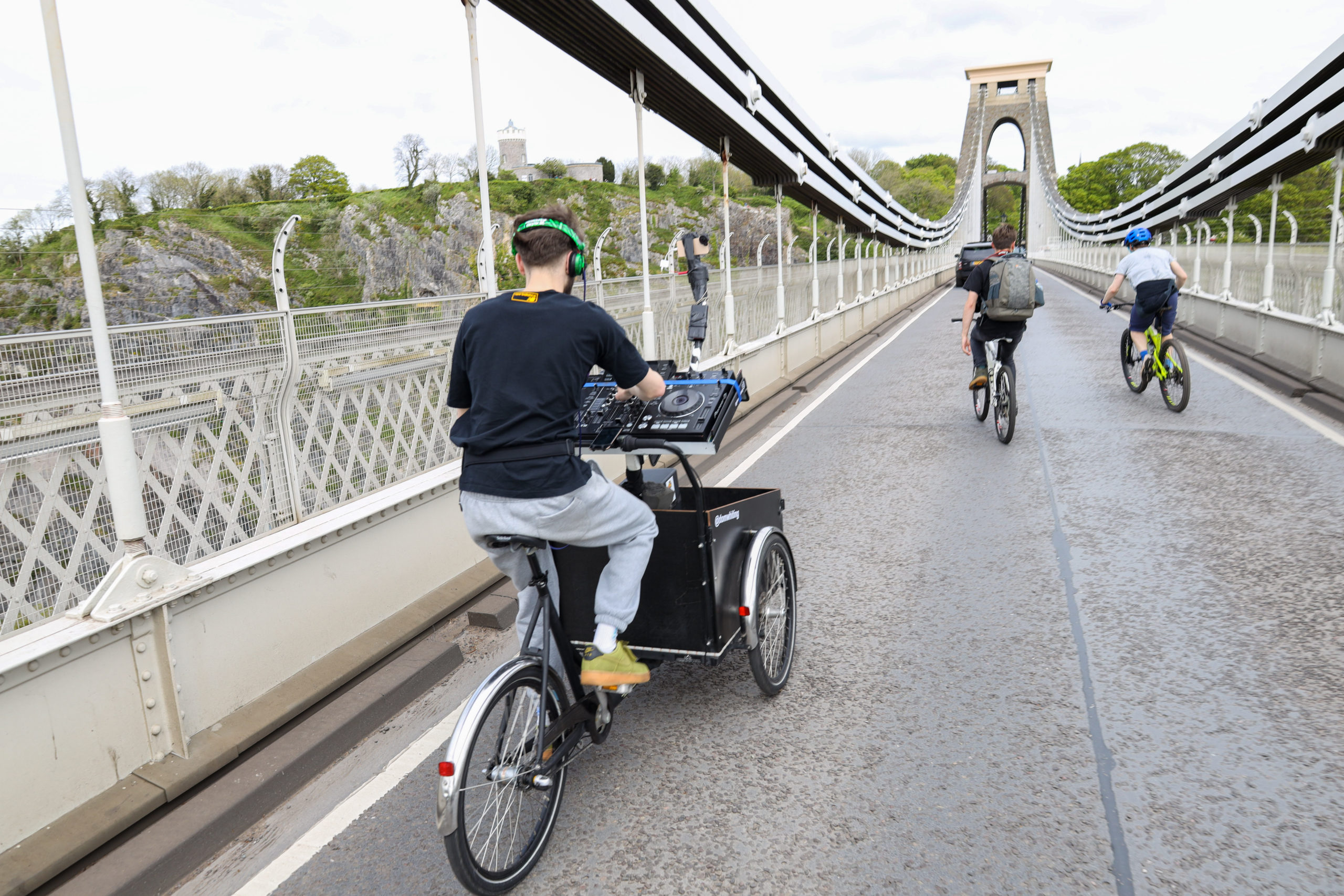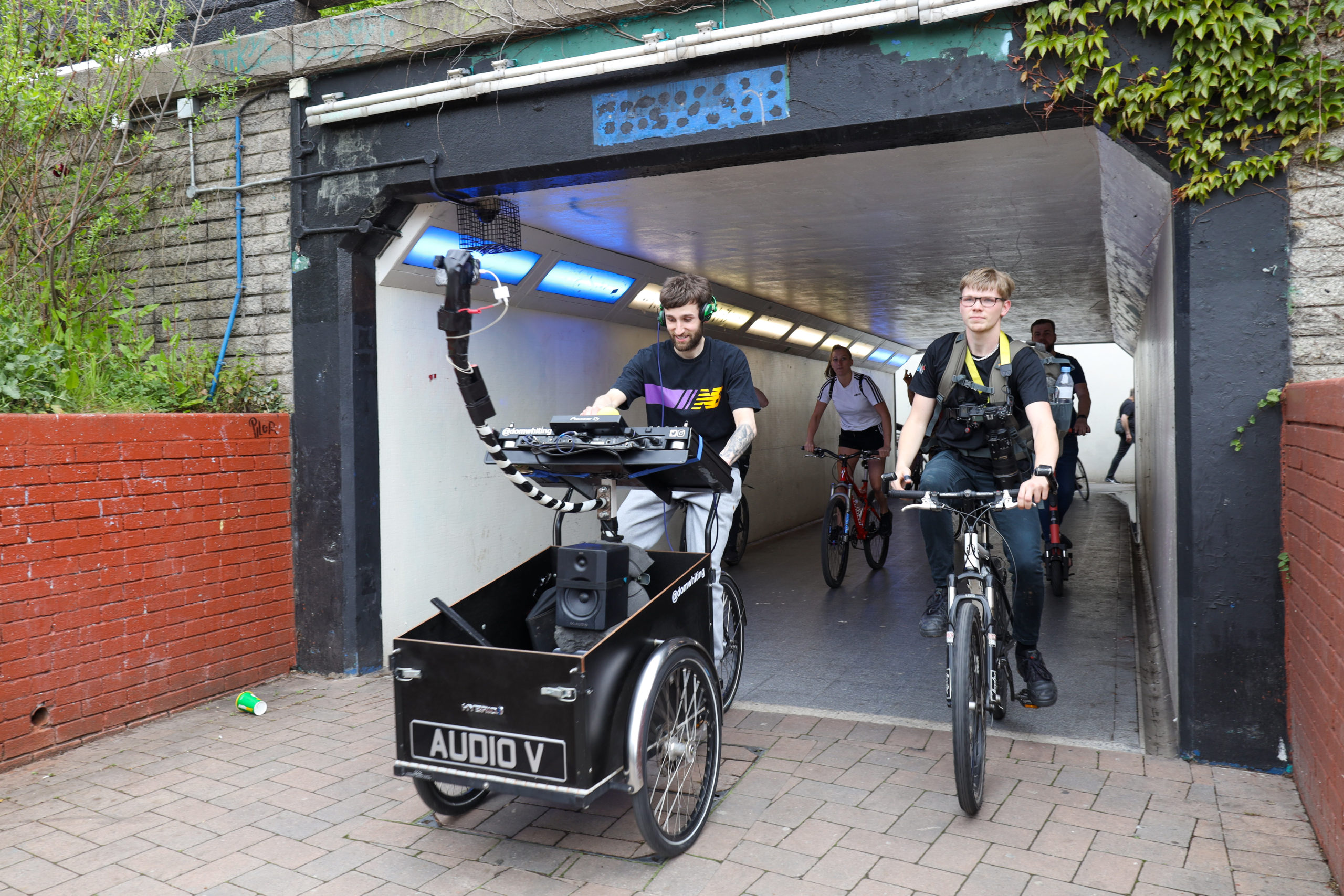 A DJ who has made his name by cycling around towns and cities on his tricycle while livestreaming sets has made his first visit to Bristol.