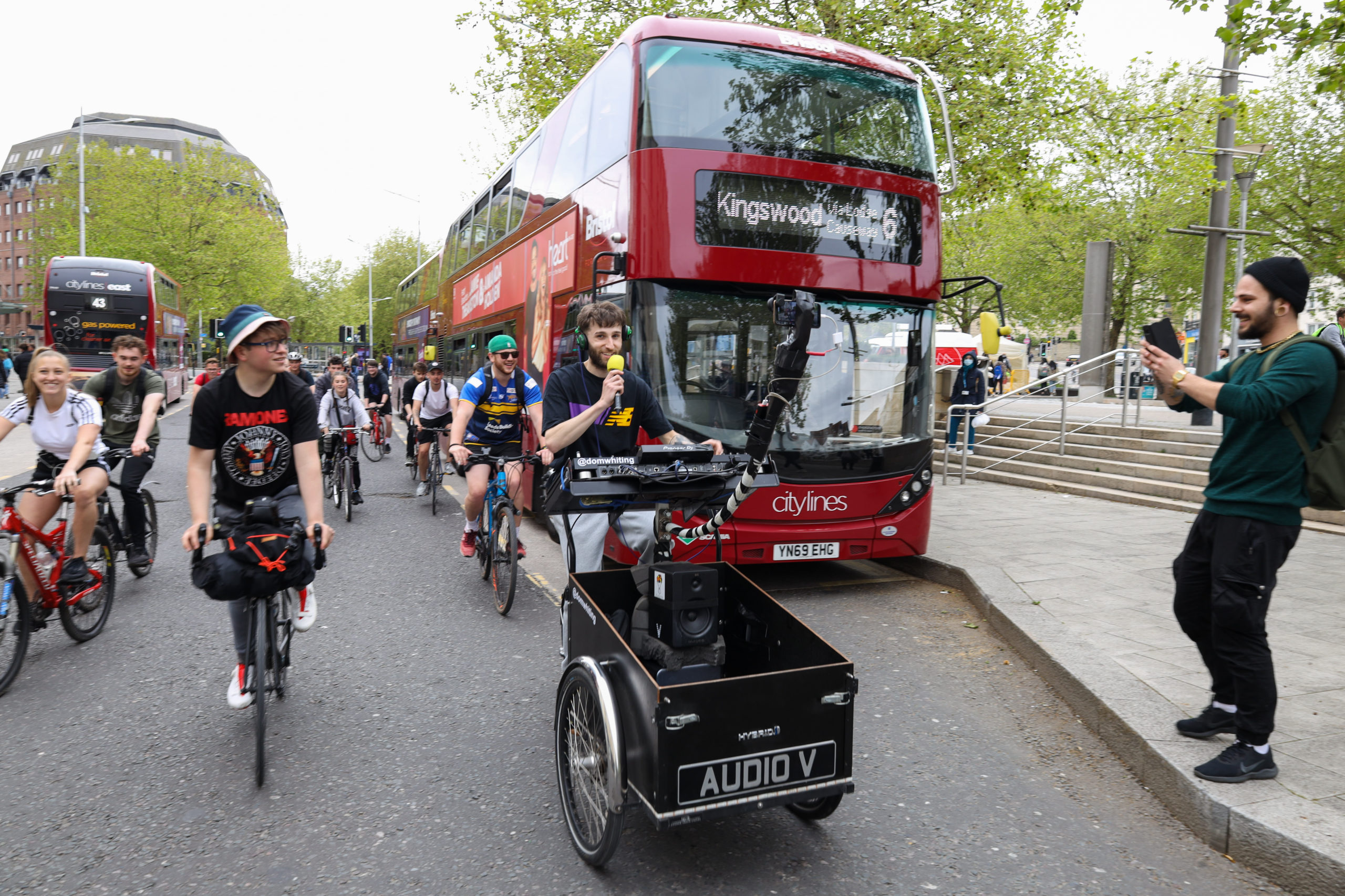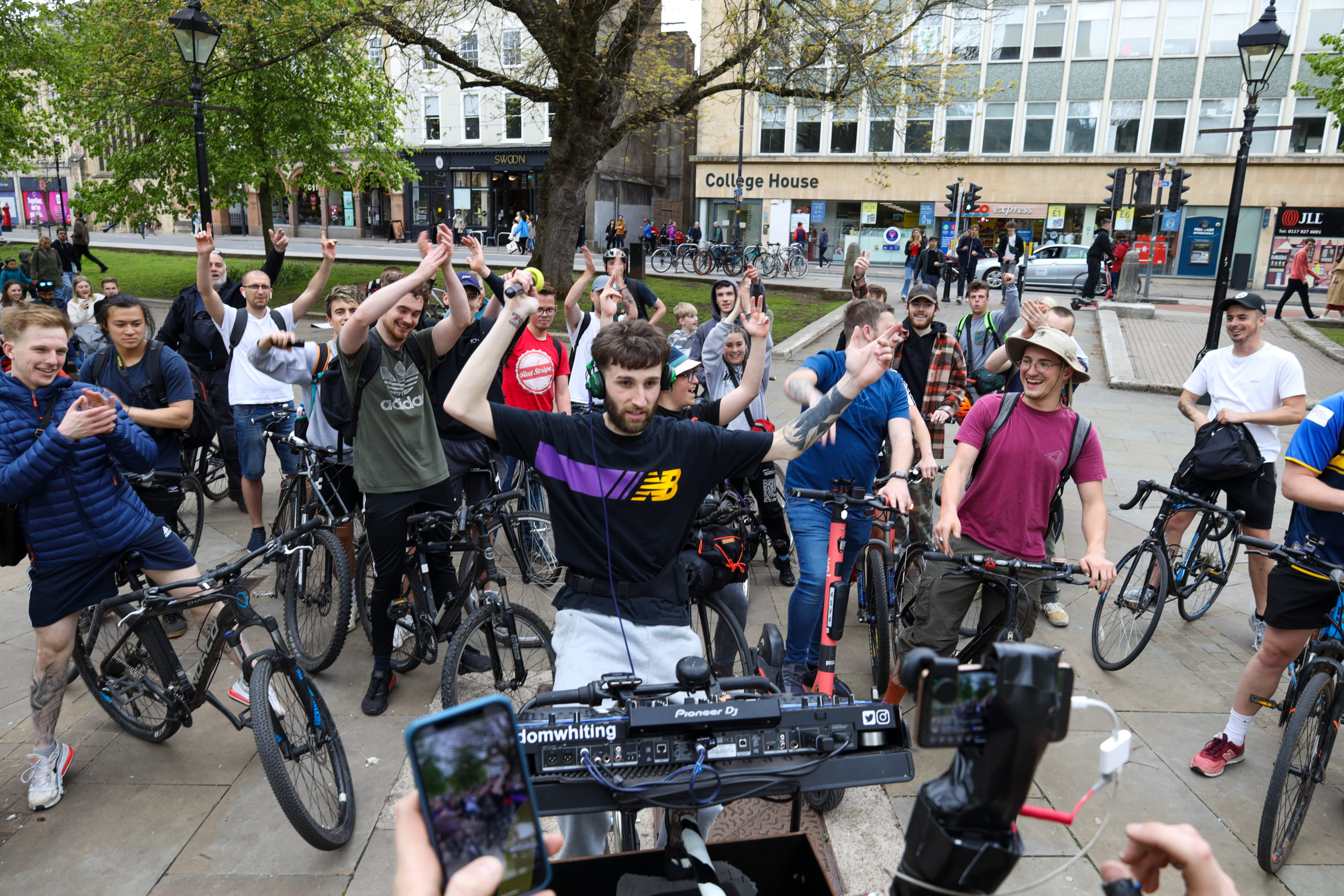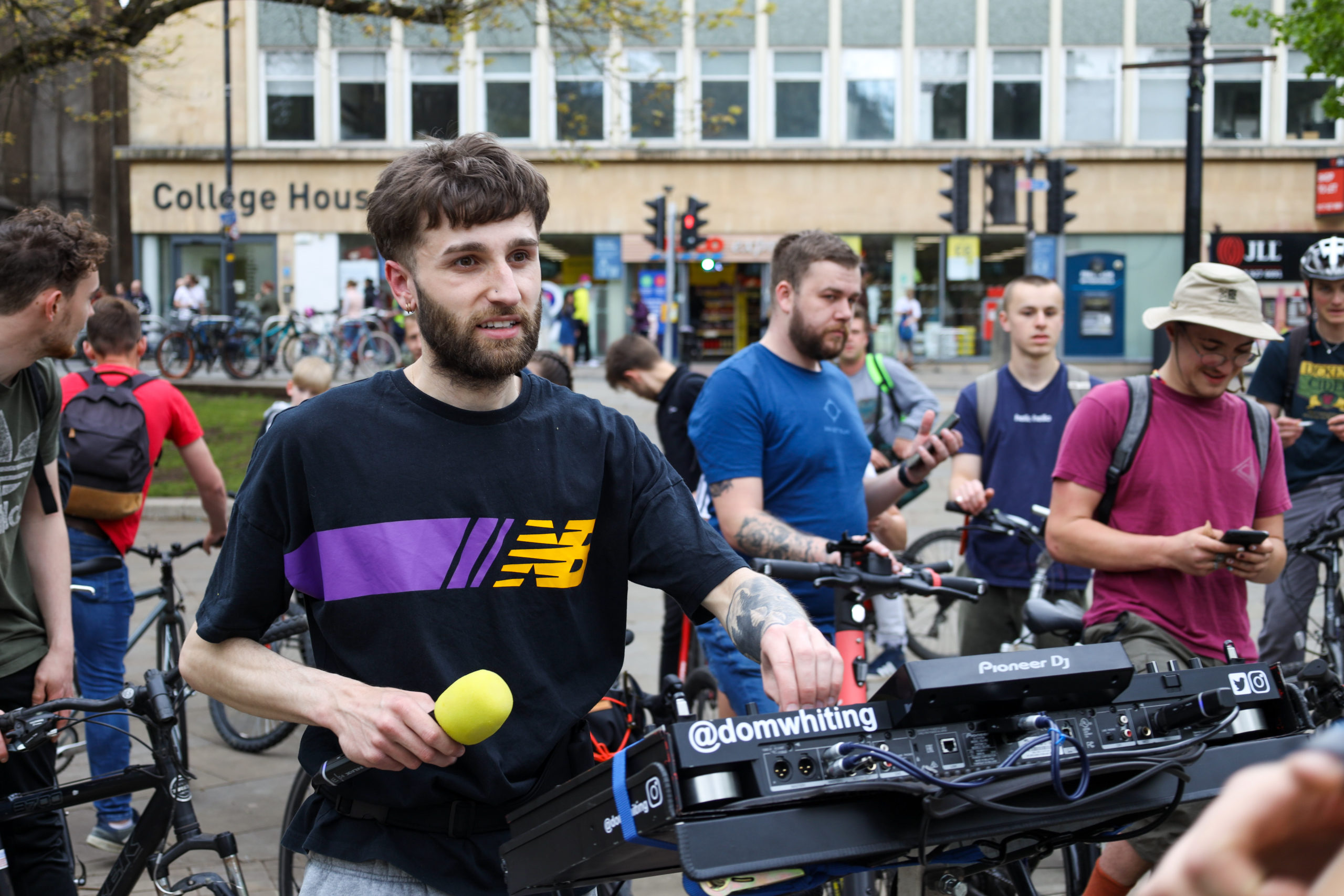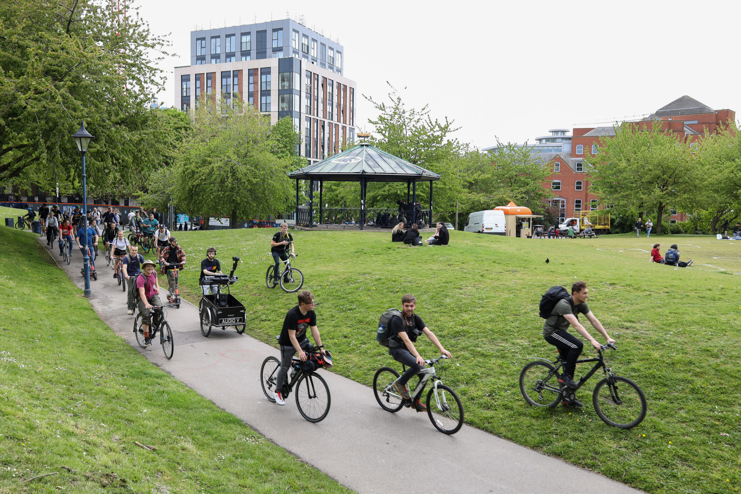 His 90-minute cycle around the city saw him joined by more than a dozen cyclists and a few people on Voi hire scooters.