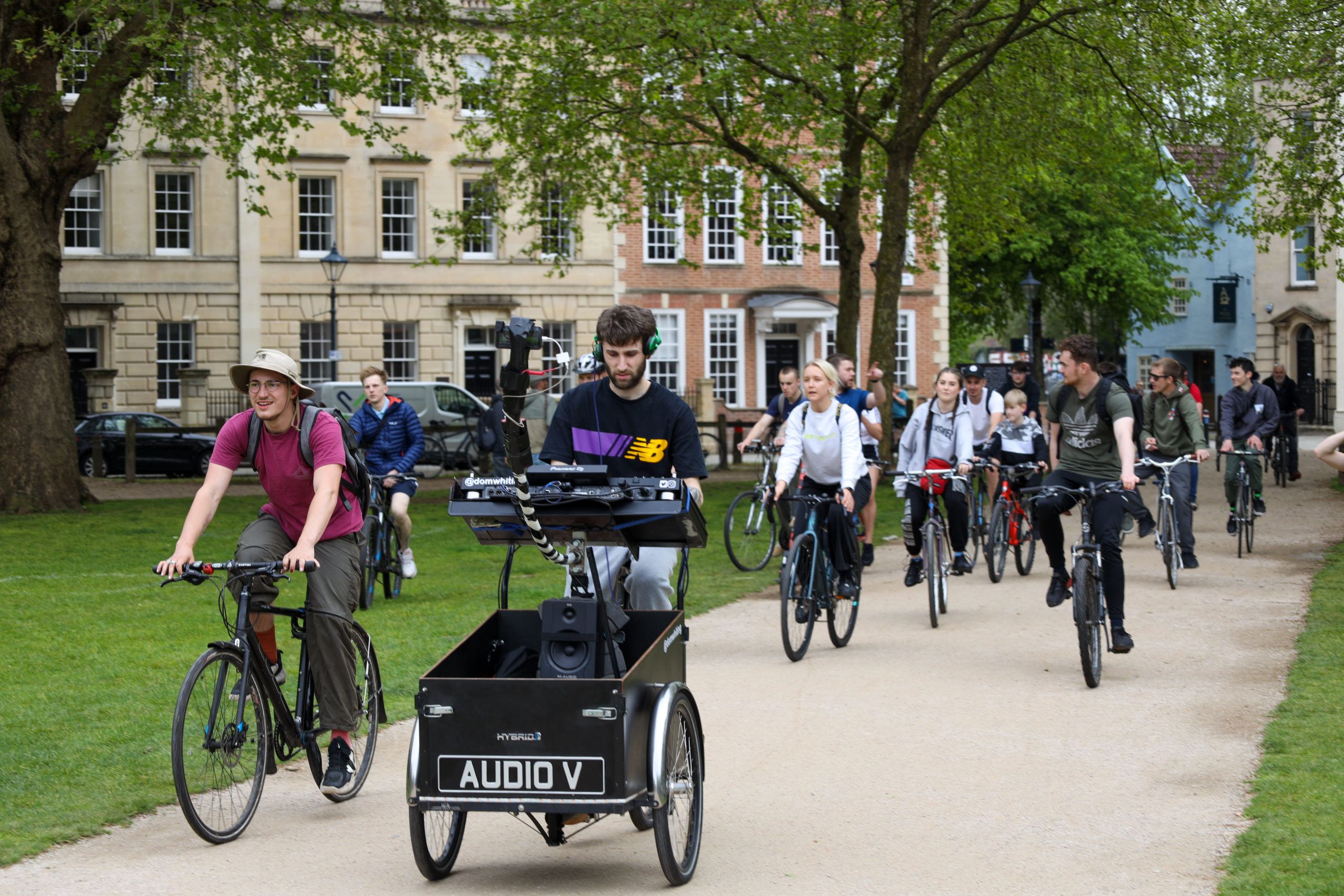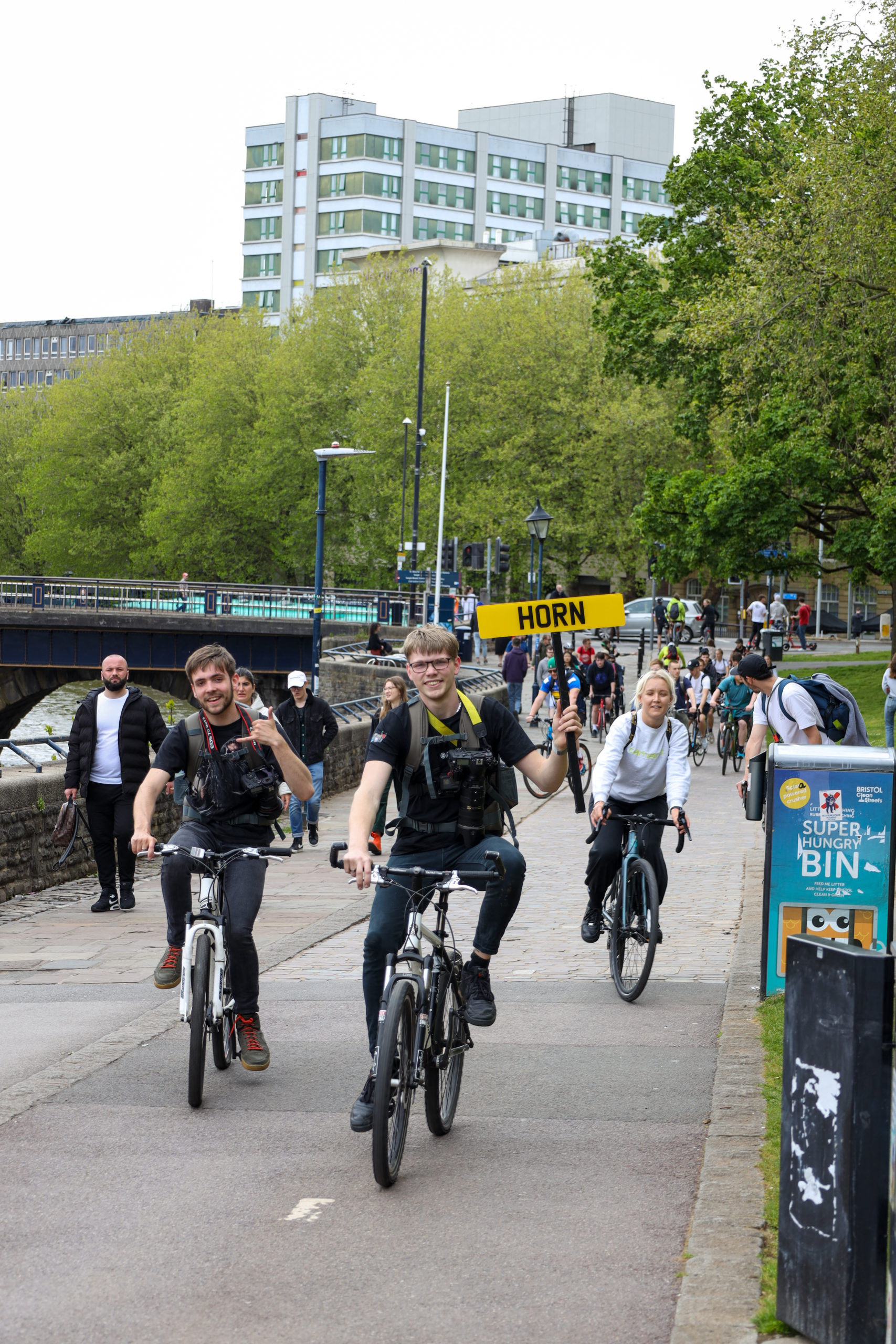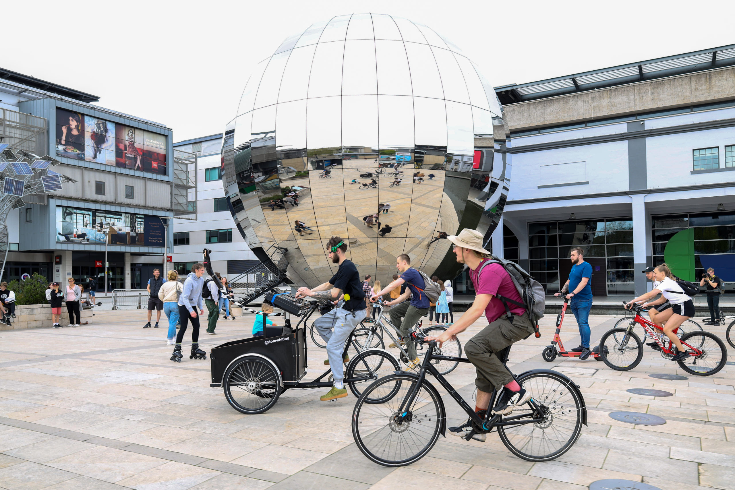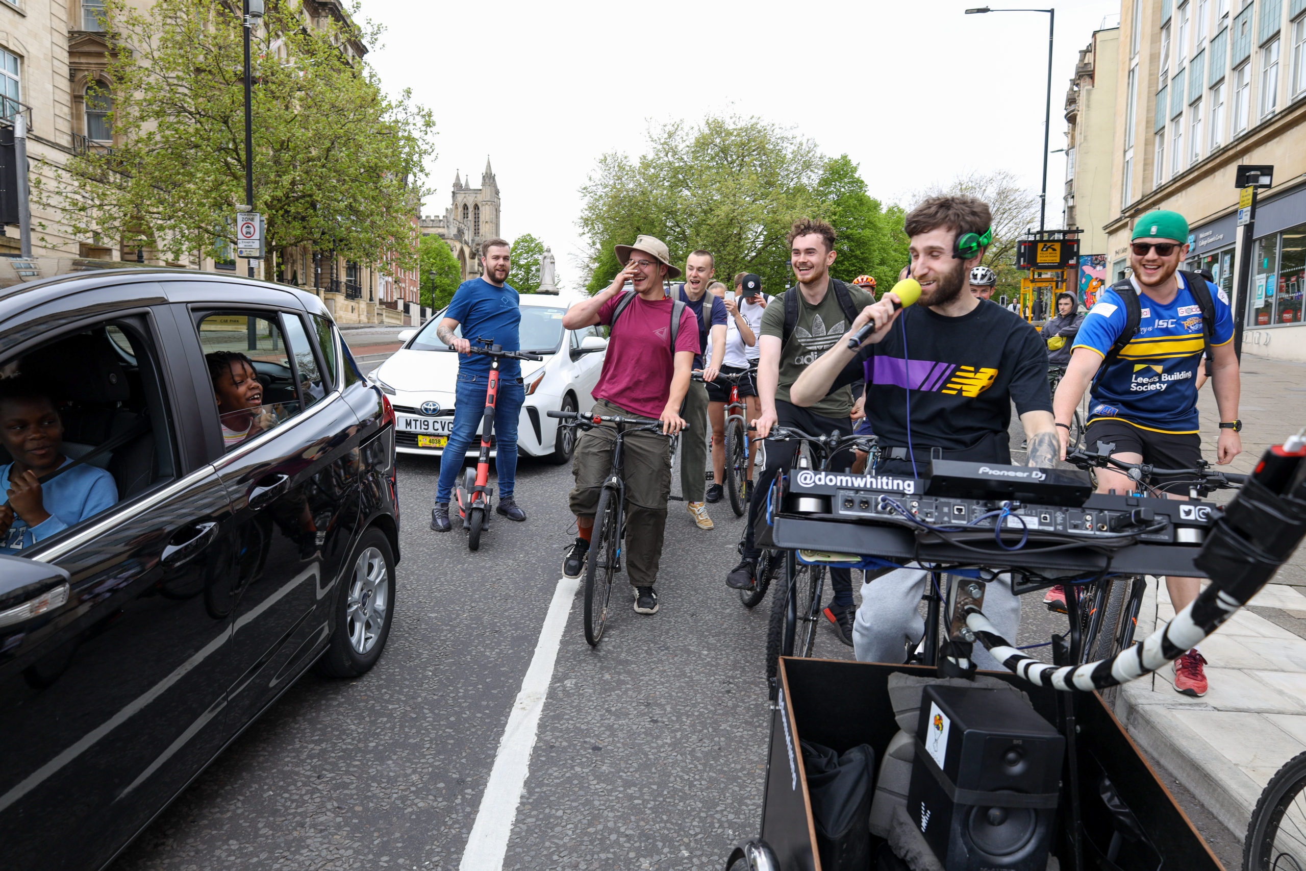 His 90-minute cycle around the city saw him joined by more than a dozen cyclists and a few people on Voi hire scooters.