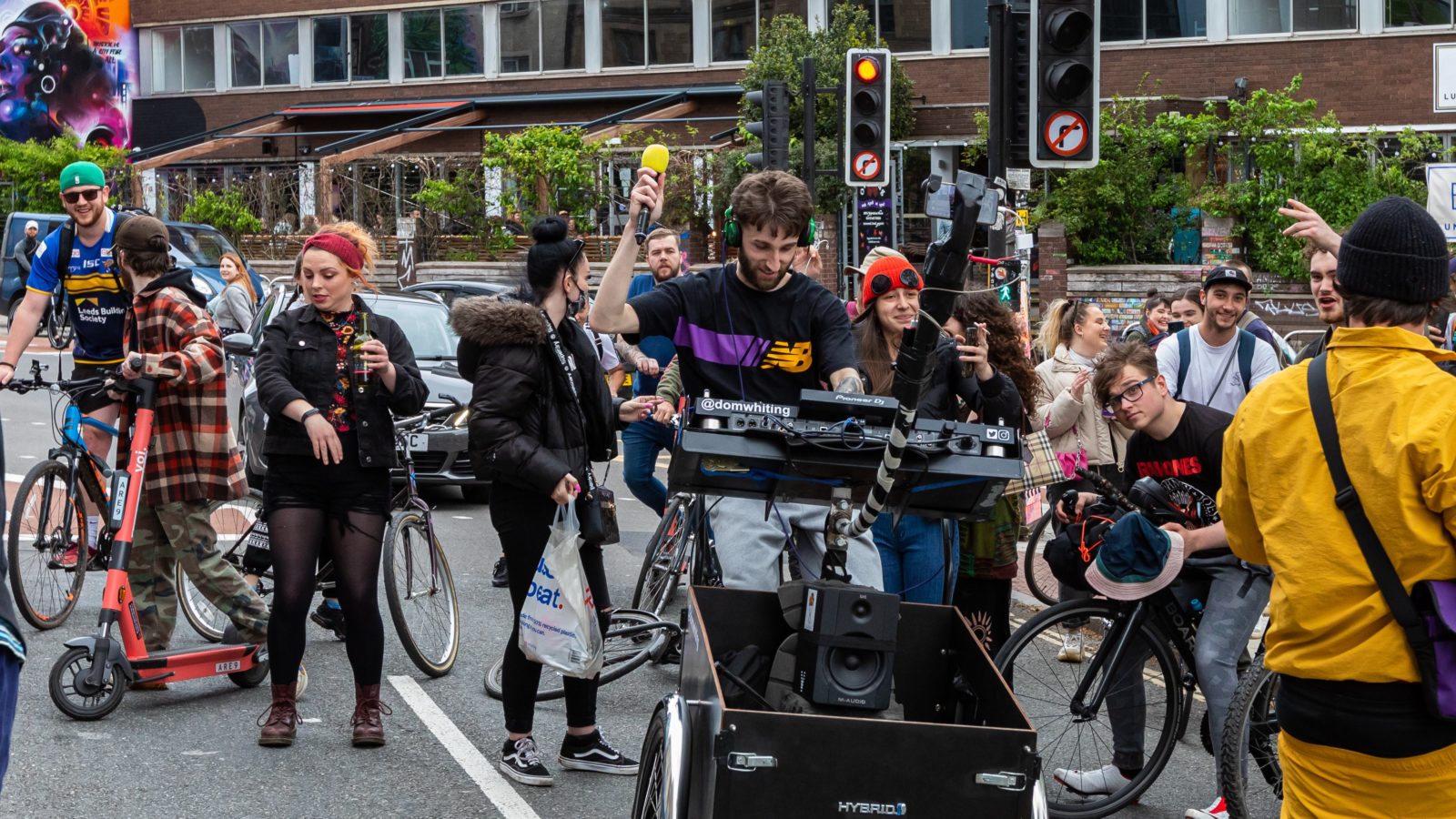 He now attracts hundreds of people to join him on his rides which sees him DJing while cycling around towns and cities.
