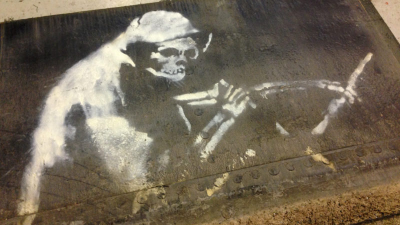 In the early noughties, Banksy took to the water and stencilled a piece directly onto the hull of the ship. This was later painted over by the Harbour Master, much to the annoyance of the Thekla’s owners. Being a nice guy, during the ongoing discussions between the owners and harbourmaster, Banksy returned and repainted his Grim Reaper piece. The artwork was removed from the side of the ship a few years back to protect it from the elements and it is now on display in the M Shed.